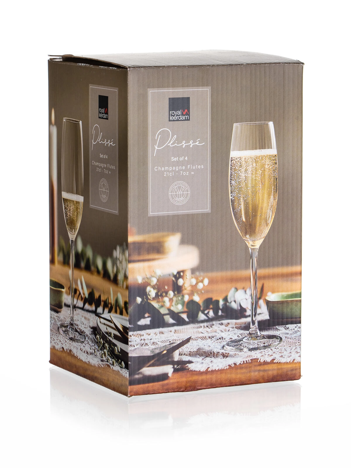 Les verres ROYAL LEERDAM Plissé sont conçus pour servir à la perfection le champagne et autres vins effervescents. Leur silhouette élancée aide à préserver la fine effervescence et les arômes frais, tandis que les lignes épurées et le verre cristallin mettent élégamment en valeur la couleur de la boisson.
