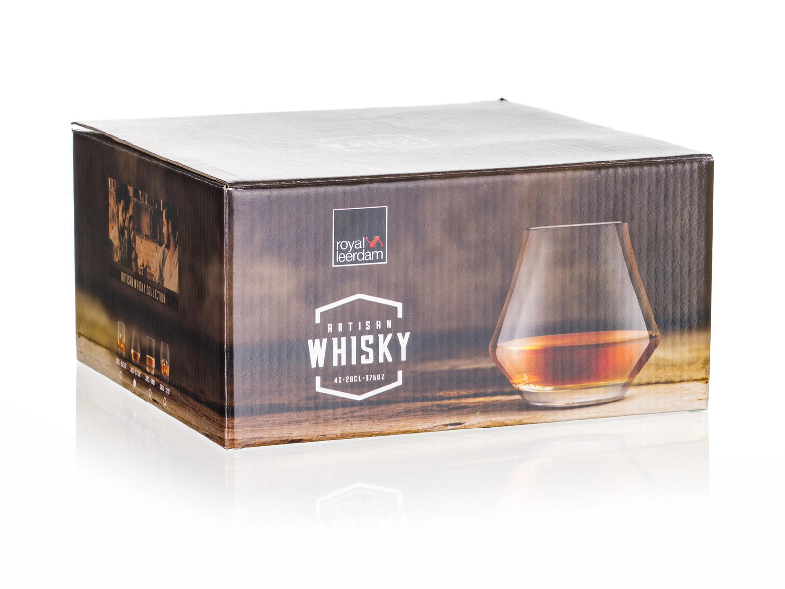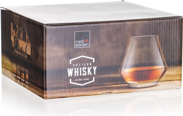 Élégant set de quatre verres à whisky bas de 290 ml de la marque ROYAL LEERDAM. Fabriqués en verre de qualité avec bord trempé pour une meilleure résistance et une longue durée de vie. Idéals pour servir whisky, bourbon et boissons sans alcool grâce à leur forme stable et leur prise en main confortable.