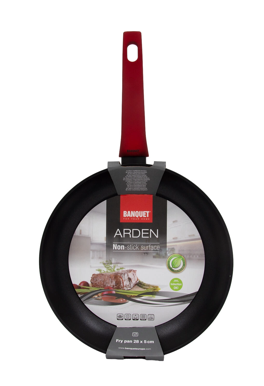 Découvrez la poêle ARDEN de 28 cm de diamètre avec un revêtement antiadhésif, une conduction thermique rapide et une poignée ergonomique soft-touch. Elle convient à tous les types de plaques de cuisson, y compris l’induction, et grâce à sa construction robuste, elle conserve durablement sa forme et sa température.