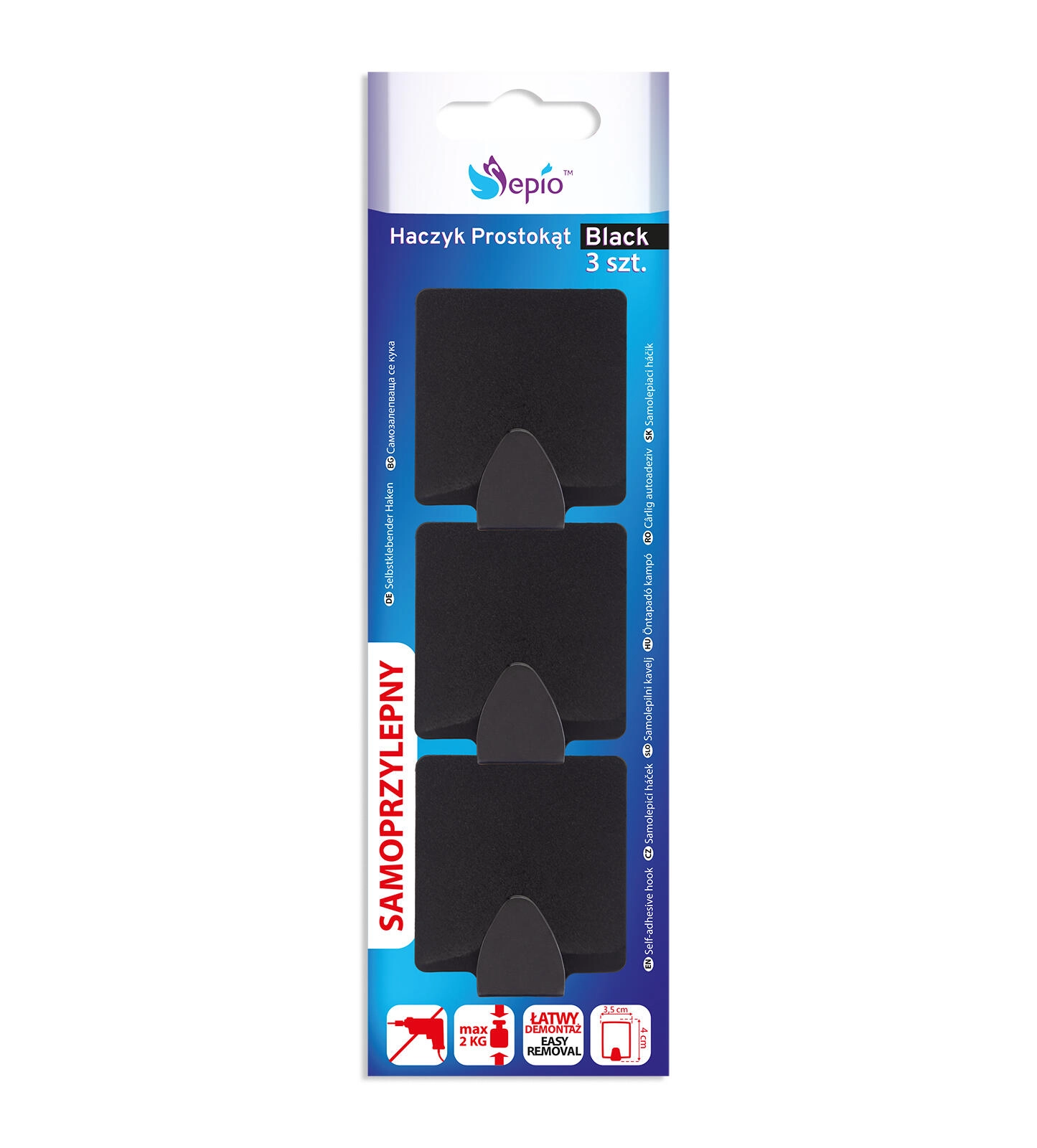 Pratique lot de trois crochets adhésifs en acier résistant, dans une élégante couleur noire, pour garder l’ordre dans toute la maison. Grâce à une couche adhésive puissante, ils offrent une installation facile sans perçage, une fixation solide et une utilisation universelle dans la salle de bains, la cuisine ou l’entrée.
