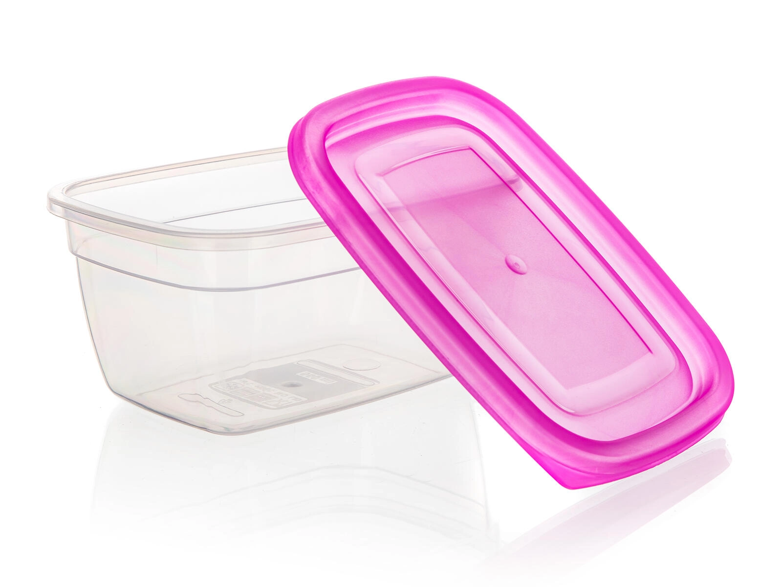 Ce set compact de boîtes est idéal pour conserver les restes, les encas, les fruits ou légumes découpés. Les parois transparentes permettent un contrôle immédiat du contenu et les couvercles roses à clip gardent tout bien fermé.
