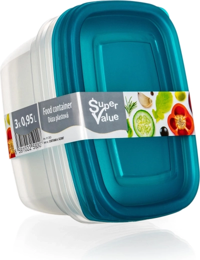 Lot de boîtes alimentaires en plastique 0,95 l – turquoise, 3 pièces