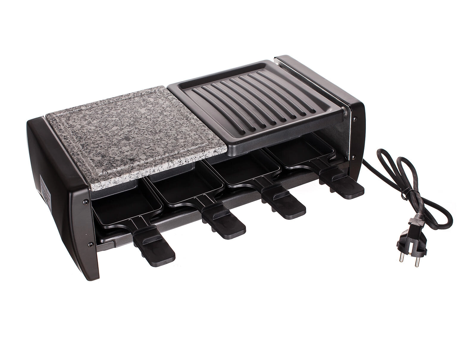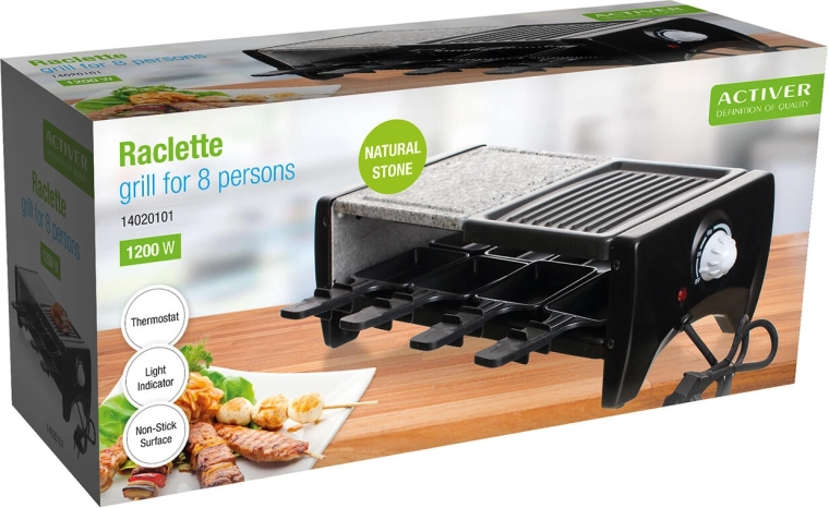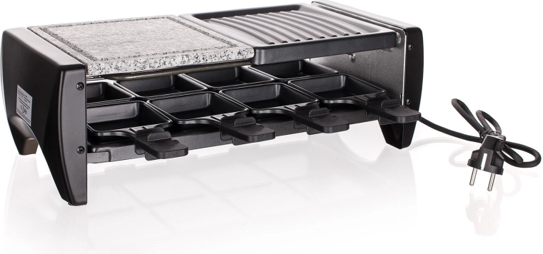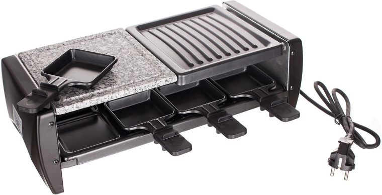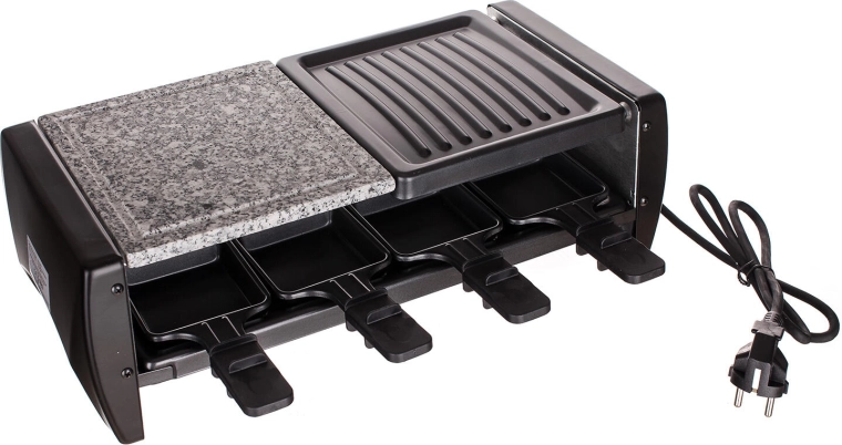 Le gril à raclette transforme chaque rencontre en un véritable moment de plaisir : la combinaison de la pierre naturelle pour une cuisson douce et de la plaque rainurée pour les marques typiques est idéale pour la viande, le poisson, les légumes et les fromages. Grâce au thermostat à réglage continu, vous ajustez facilement la température optimale pour chaque ingrédient.