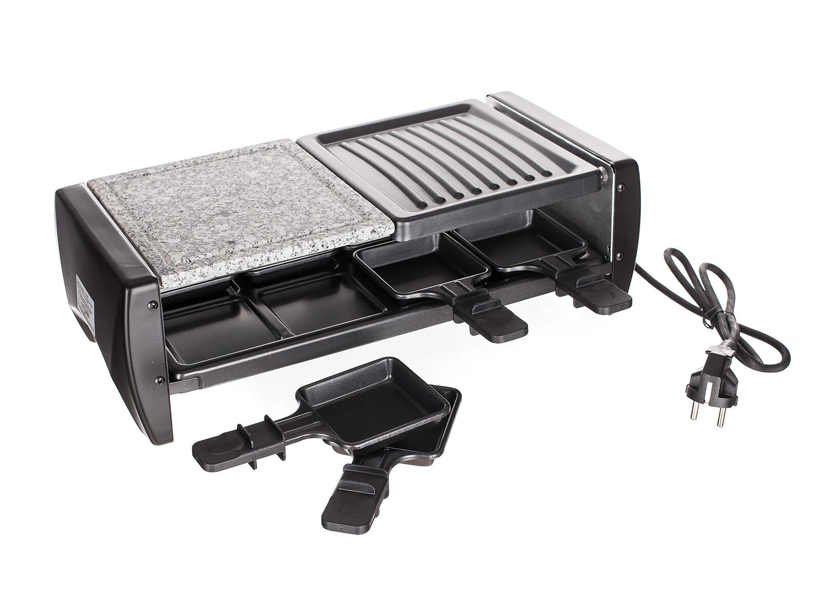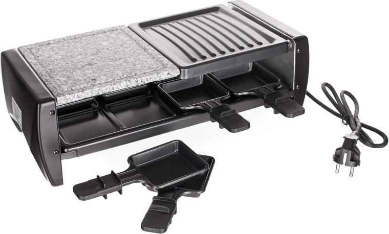 Huit coupelles antiadhésives permettent à chaque convive de préparer sa propre raclette, ses légumes ou une mini-omelette sans attacher et avec un minimum d’huile.