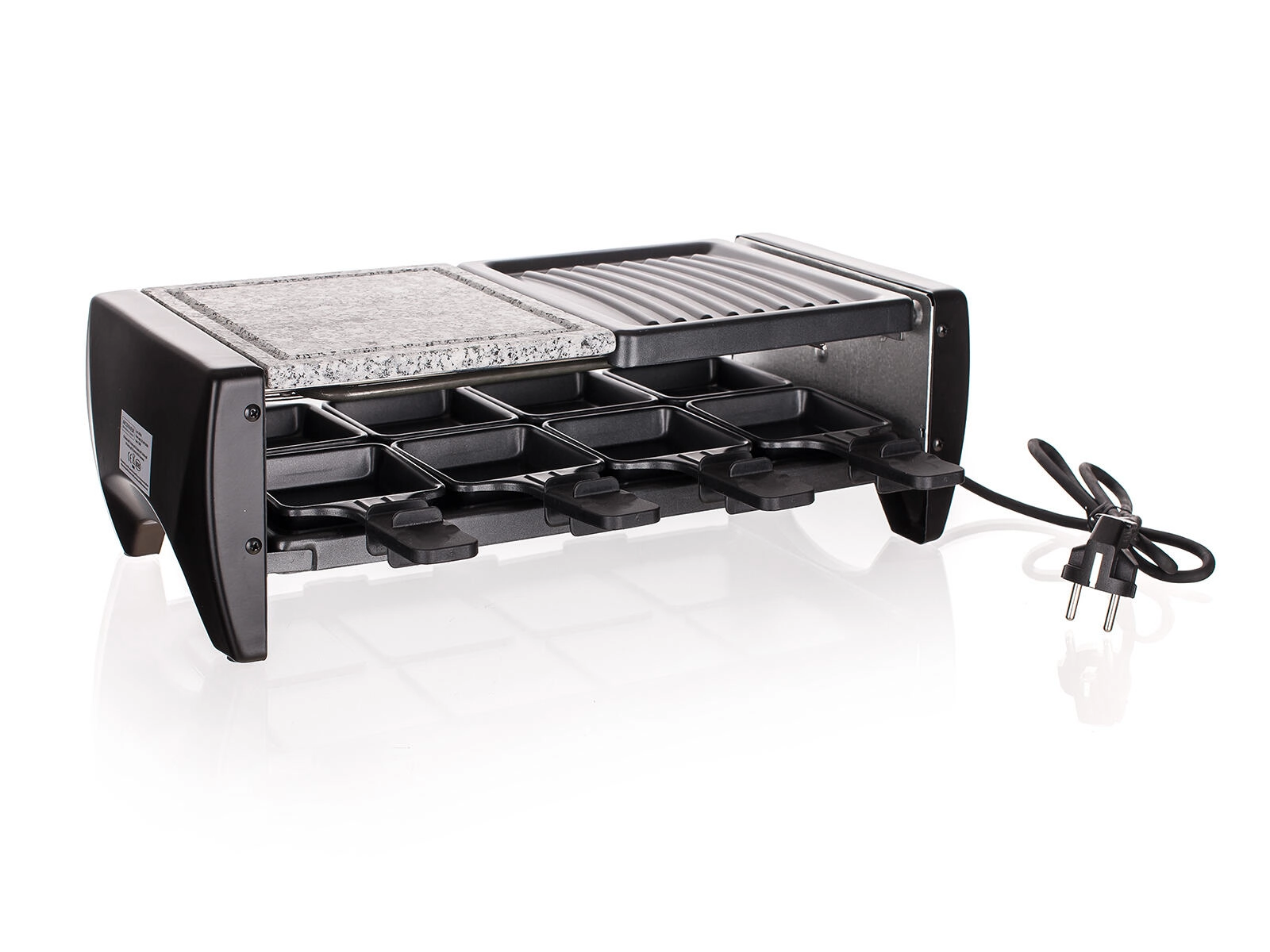 Les huit coupelles antiadhésives permettent à chacun de préparer sa portion – du fromage fondu aux mini-omelettes en passant par des mélanges de légumes. Le gril est démontable et, une fois refroidi, se nettoie très facilement, ce qui le rend parfait pour une utilisation quotidienne à la maison comme sur le balcon.