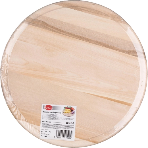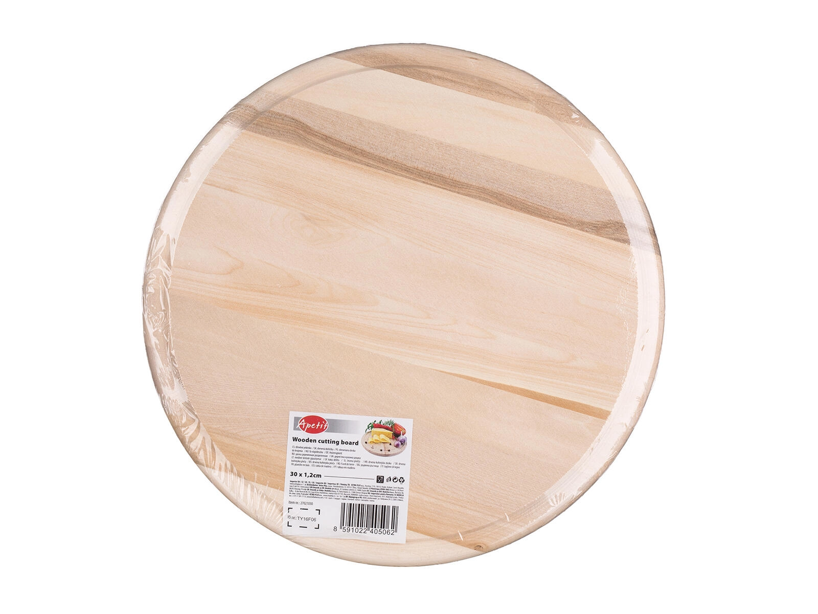 Découvrez une planche fiable en bois de bouleau d'un diamètre de 30 cm et d'une hauteur de 1,2 cm. Sa forme ronde et sa rigole périphérique assurent un confort optimal pour couper et servir pains, fromages ou viandes sans salir le plan de travail.