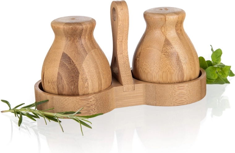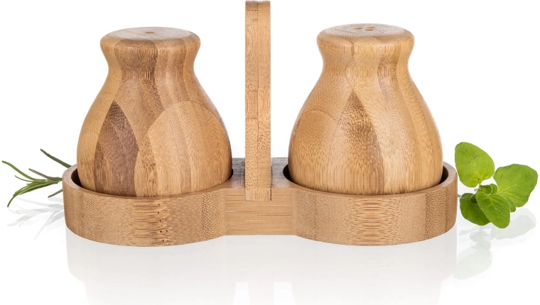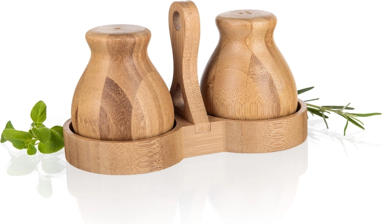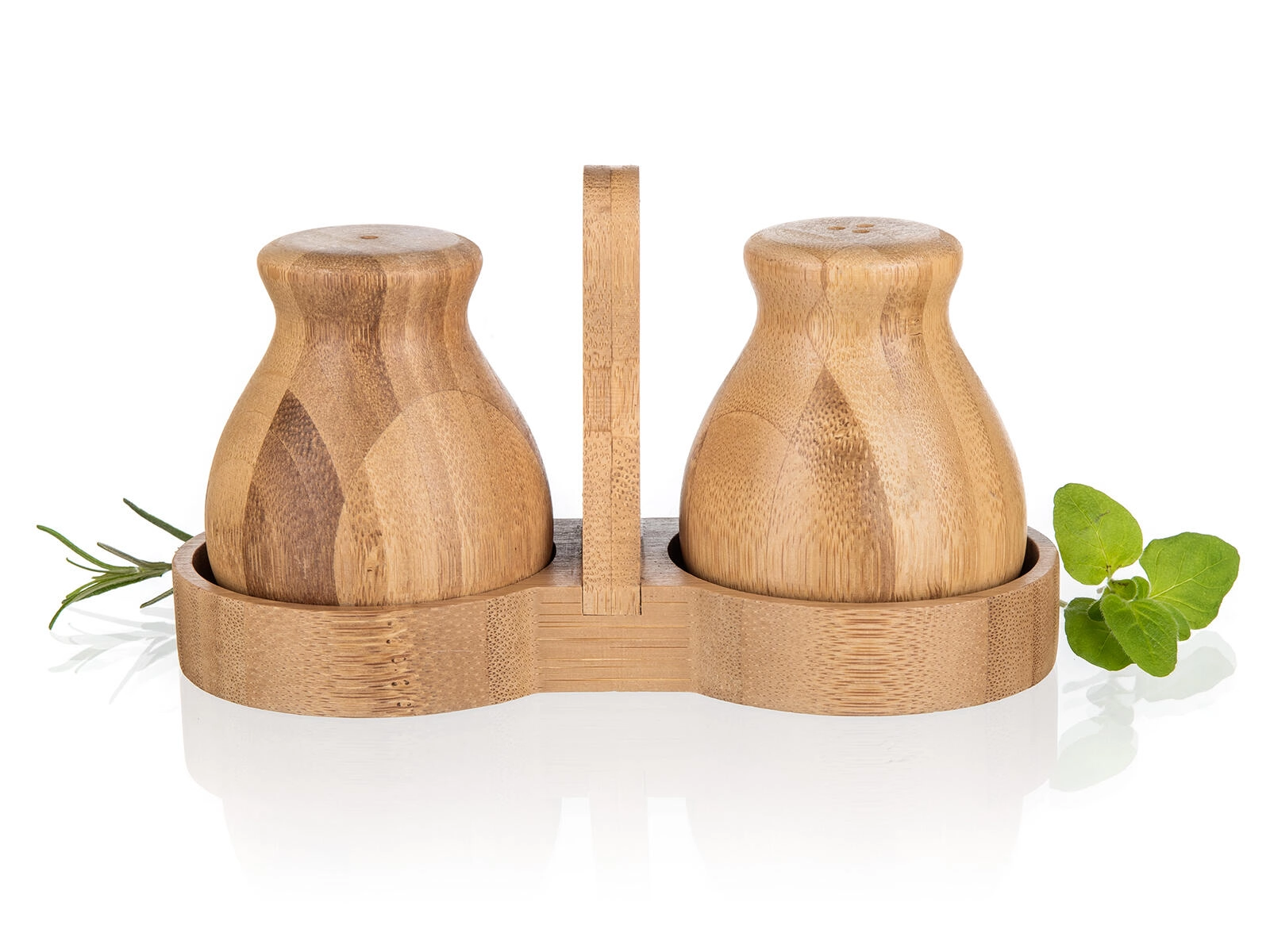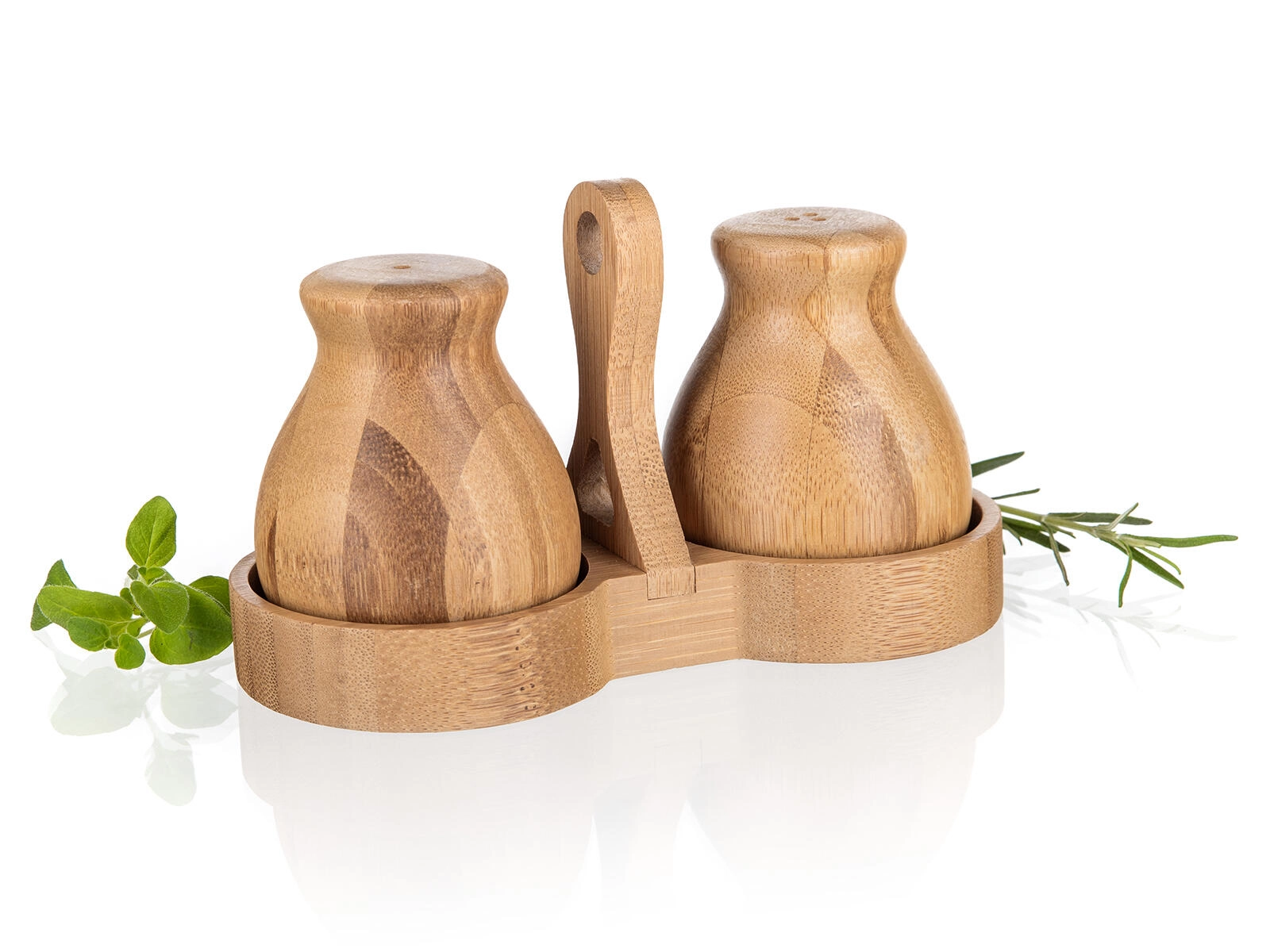 Salière et poivrière en bambou avec support BRILLANTE Bamboo