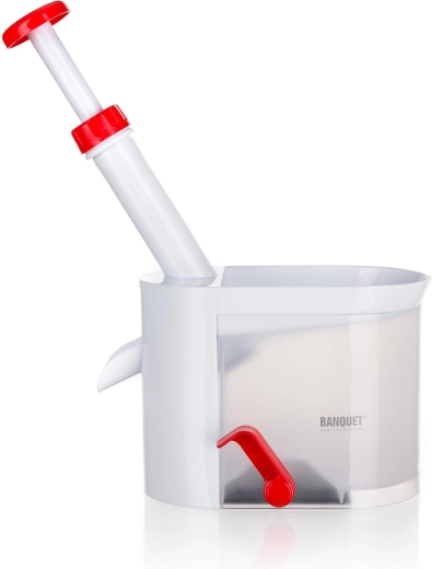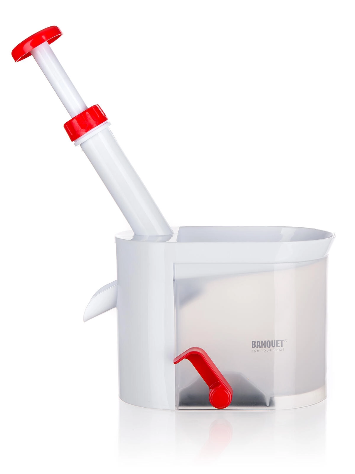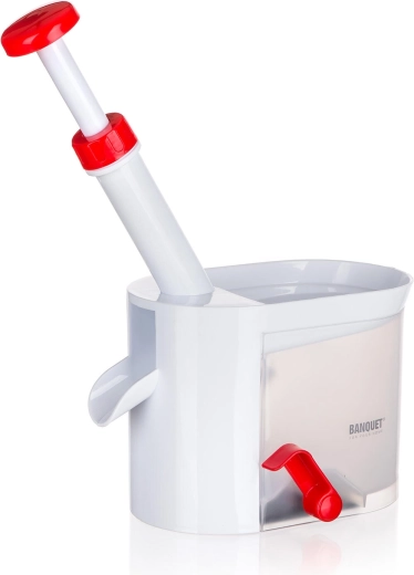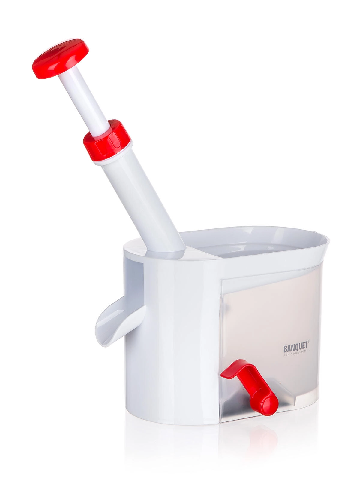 L’appareil est fabriqué en plastique robuste dans un design blanc et rouge, se démonte et se nettoie facilement. Idéal pour de grands volumes de fruits – compotes, confitures, pâtisserie et congélation. Ses dimensions compactes économisent de la place en cuisine.