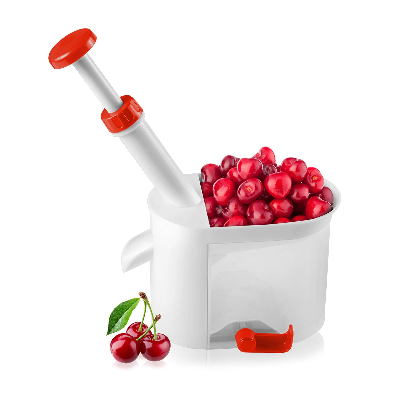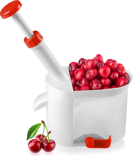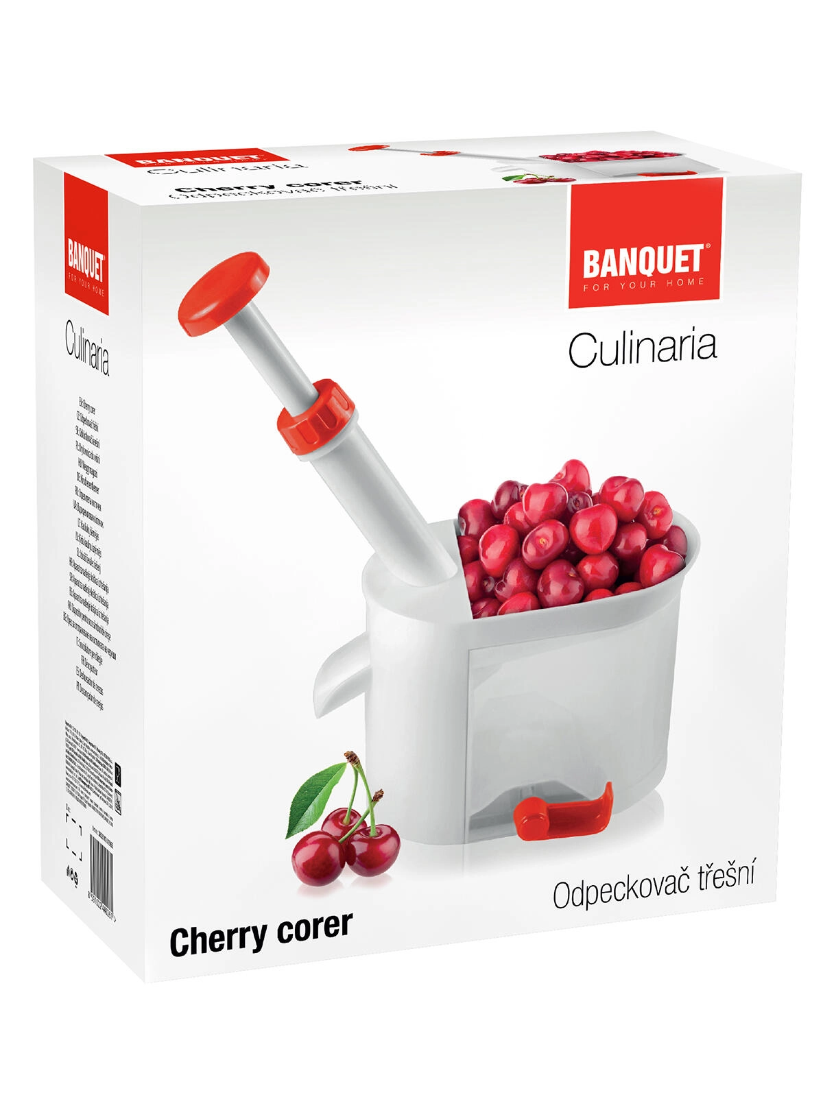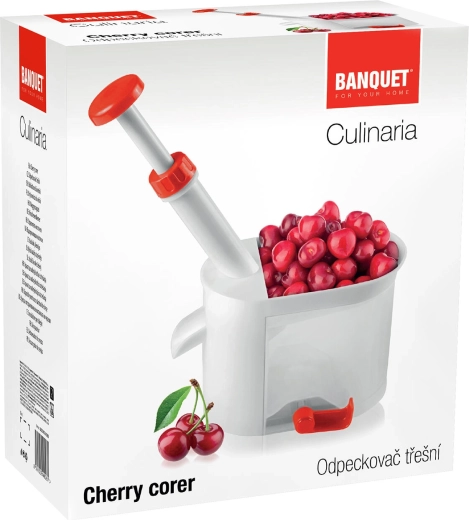 Simplifiez le traitement des cerises avec le dénoyauteur Culinaria Red. Le corps haut avec levier permet un dénoyautage confortable à une main, le récipient transparent recueille les noyaux ainsi que le jus, et les éléments de commande rouges assurent le guidage précis du poussoir. La stabilité pendant l’utilisation est garantie par les ventouses en caoutchouc sur la base.