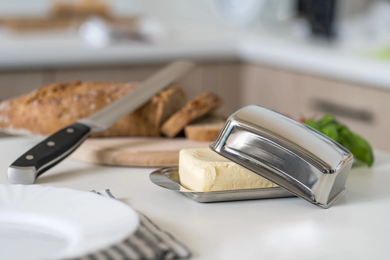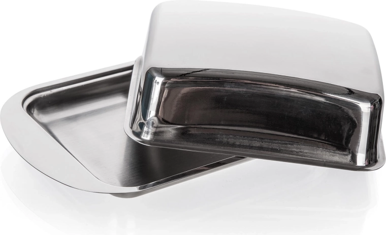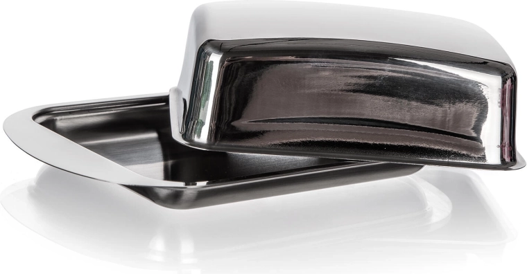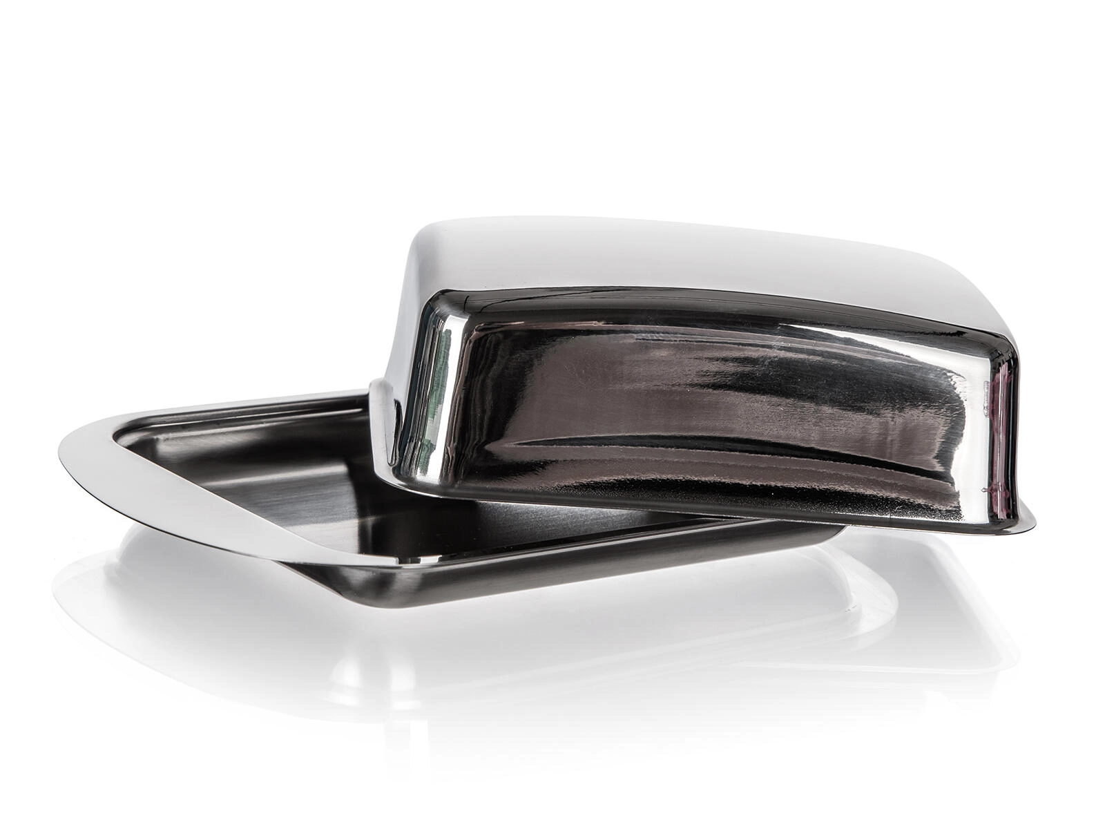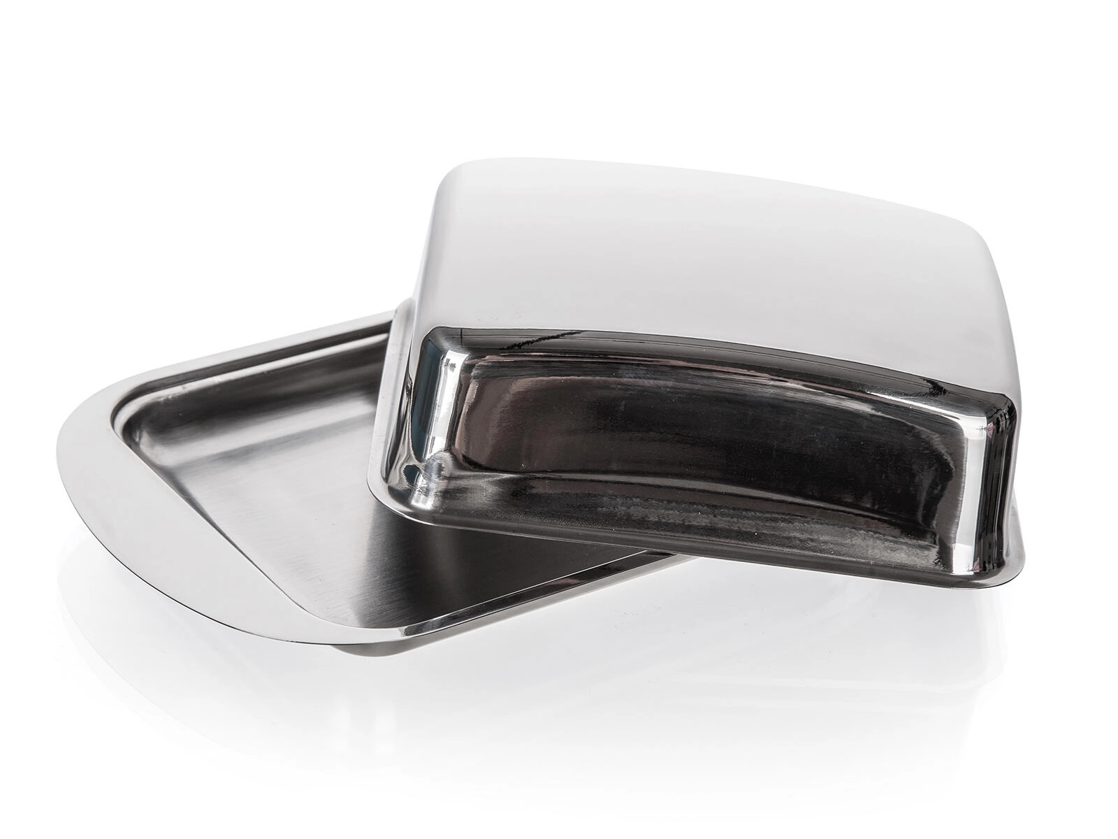 Ce beurrier stylé en acier inoxydable de qualité protège le beurre de la lumière, des odeurs et du dessèchement. Grâce à son look intemporel, il convient aussi bien aux cuisines modernes que traditionnelles et se nettoie facilement.