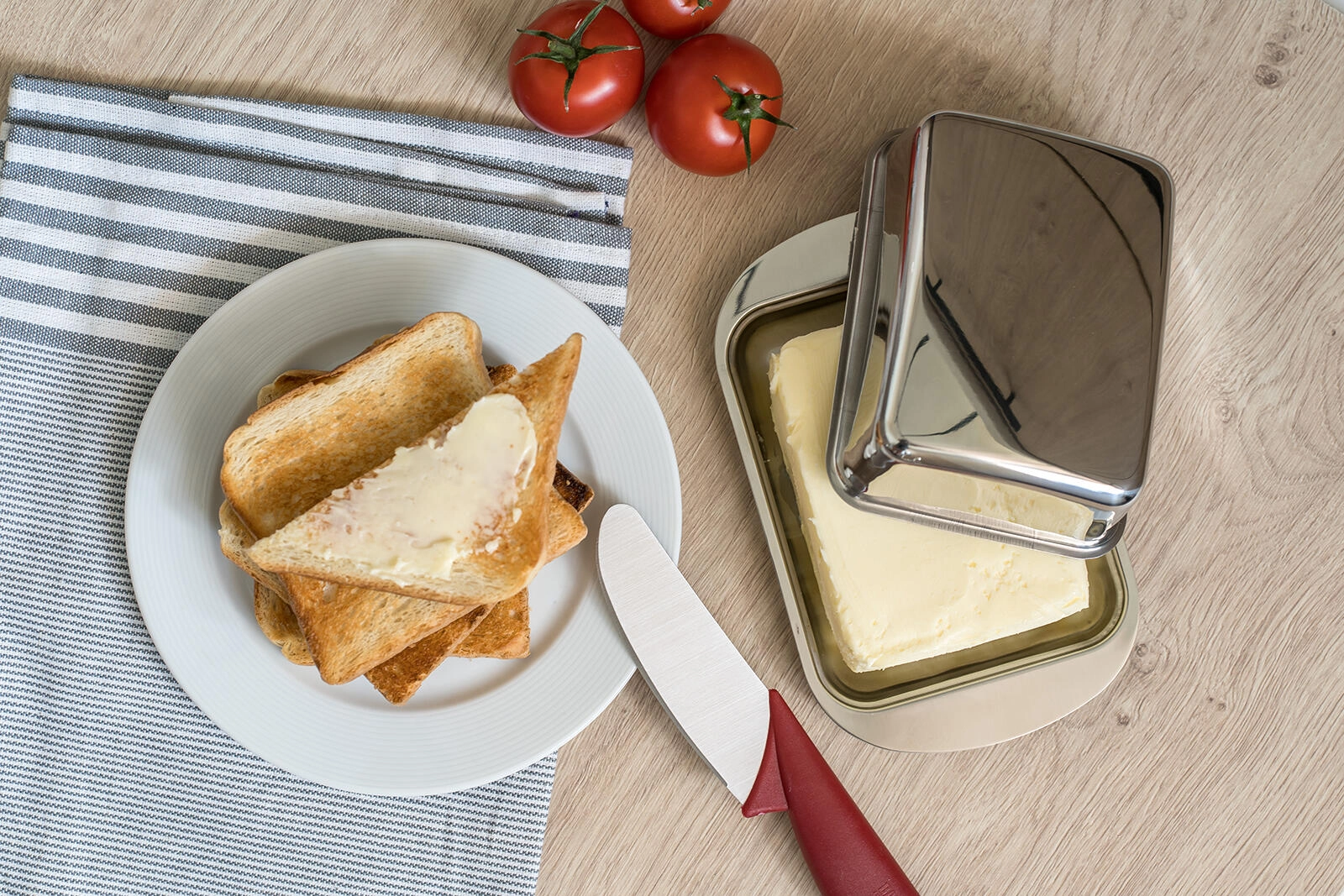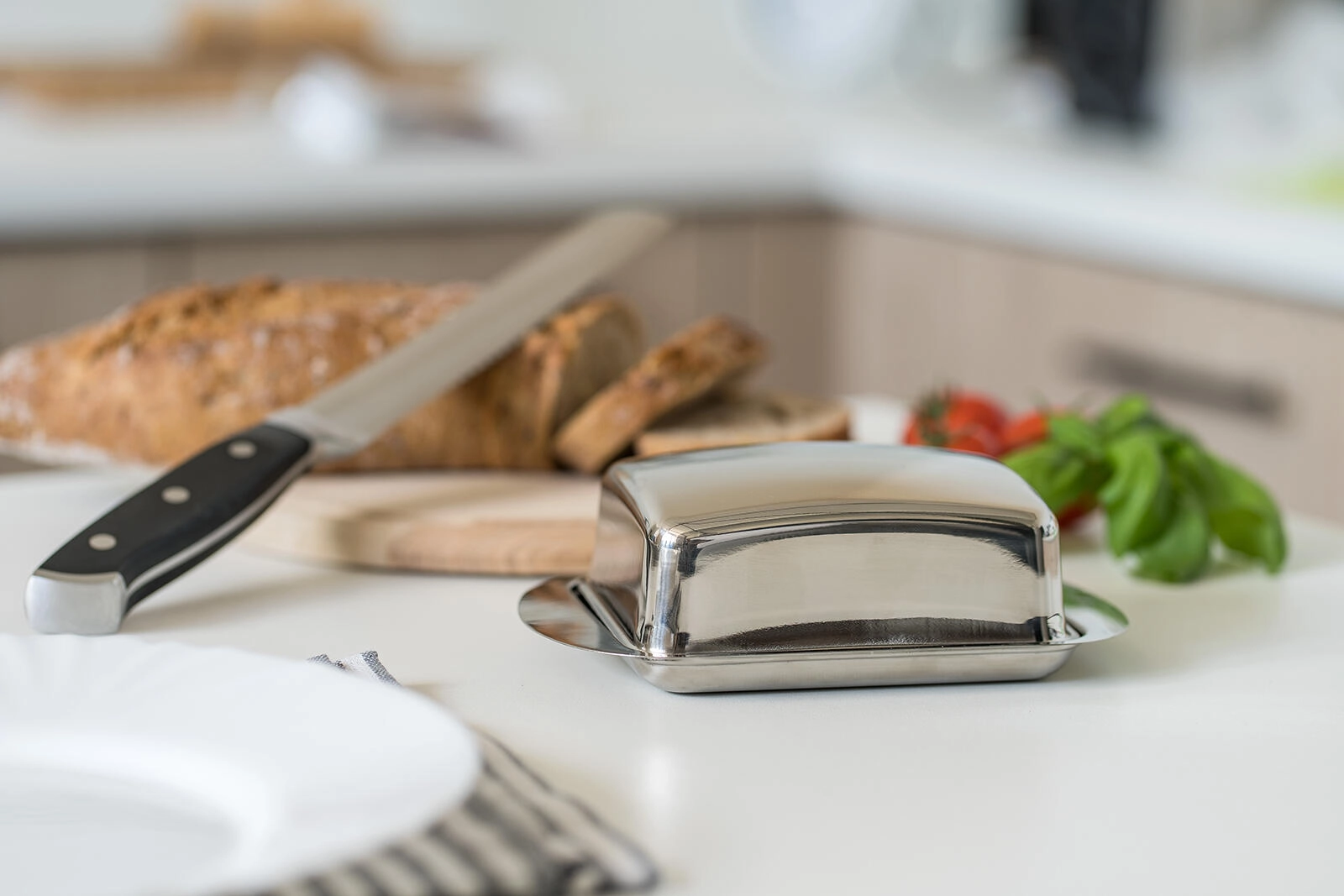 Le beurrier est fabriqué en acier inoxydable de qualité, résistant à la corrosion, hygiénique et facile à nettoyer pour un usage quotidien.