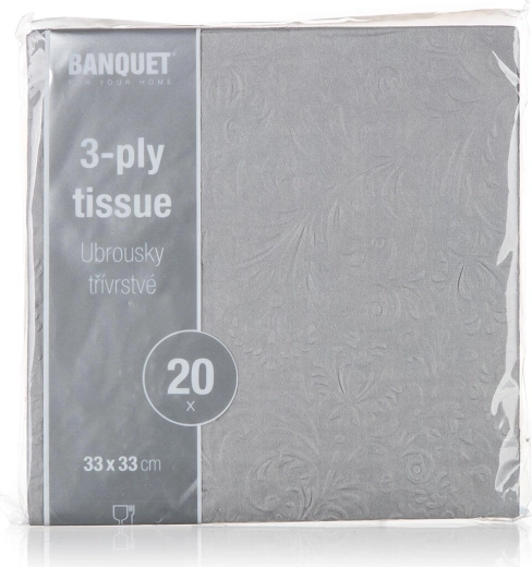 Affinez votre dressage avec ces serviettes grises au relief élégant qui confèrent un aspect premium à la table. Grâce aux 3 plis, elles sont agréables au toucher, résistantes et gèrent fiablement les petites salissures comme les éclaboussures. Leur taille universelle 33 × 33 cm convient au déjeuner, au dîner et aux collations lors des fêtes.
