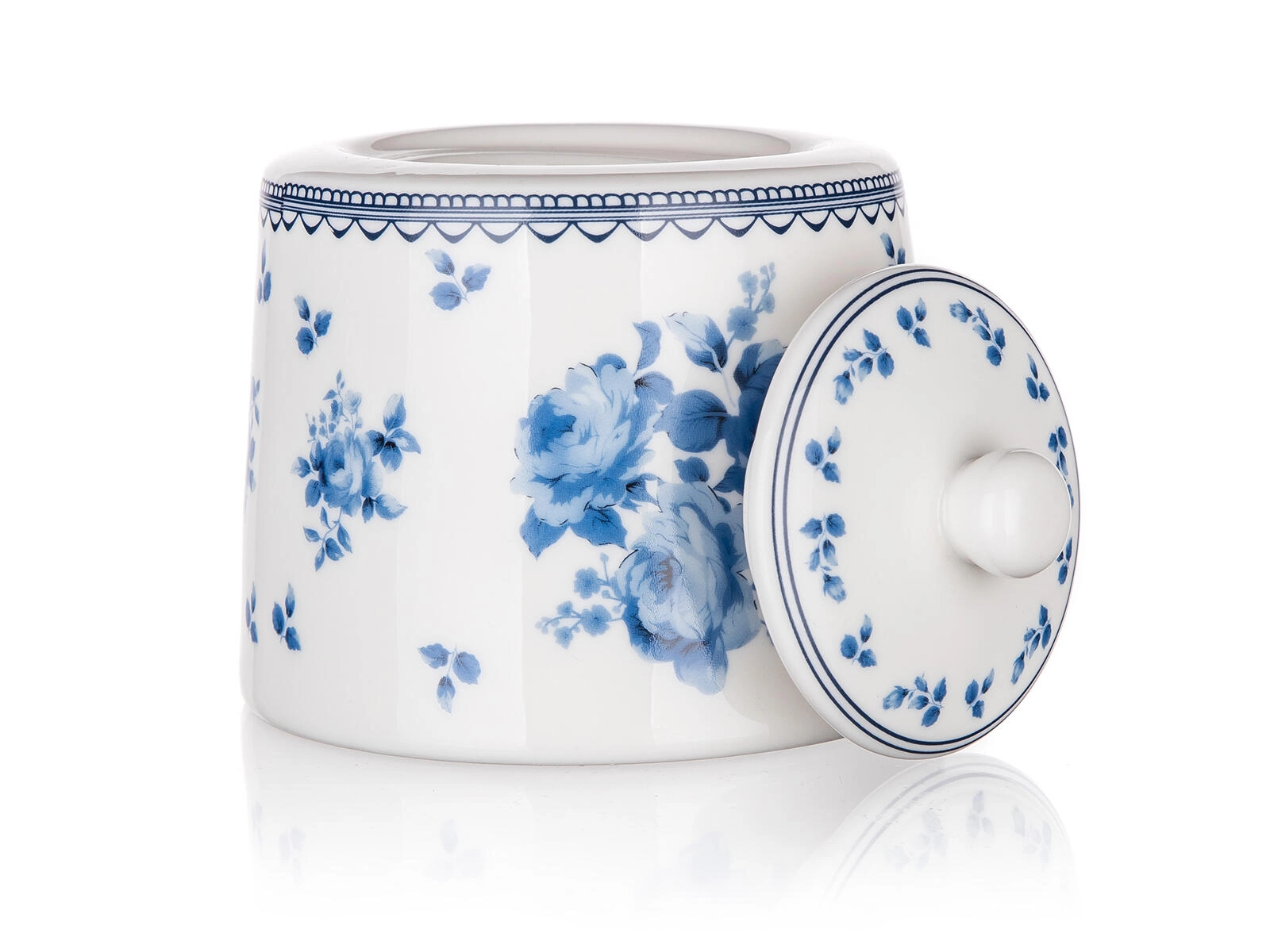 Ce sucrier stylé d’une hauteur de 9,5 cm se distingue par une base blanche classique avec un décor floral bleu et un couvercle pratique doté d’une poignée ronde. Il complétera parfaitement votre table lors du service du café ou du thé et, grâce à sa glaçure de qualité, se nettoie facilement.