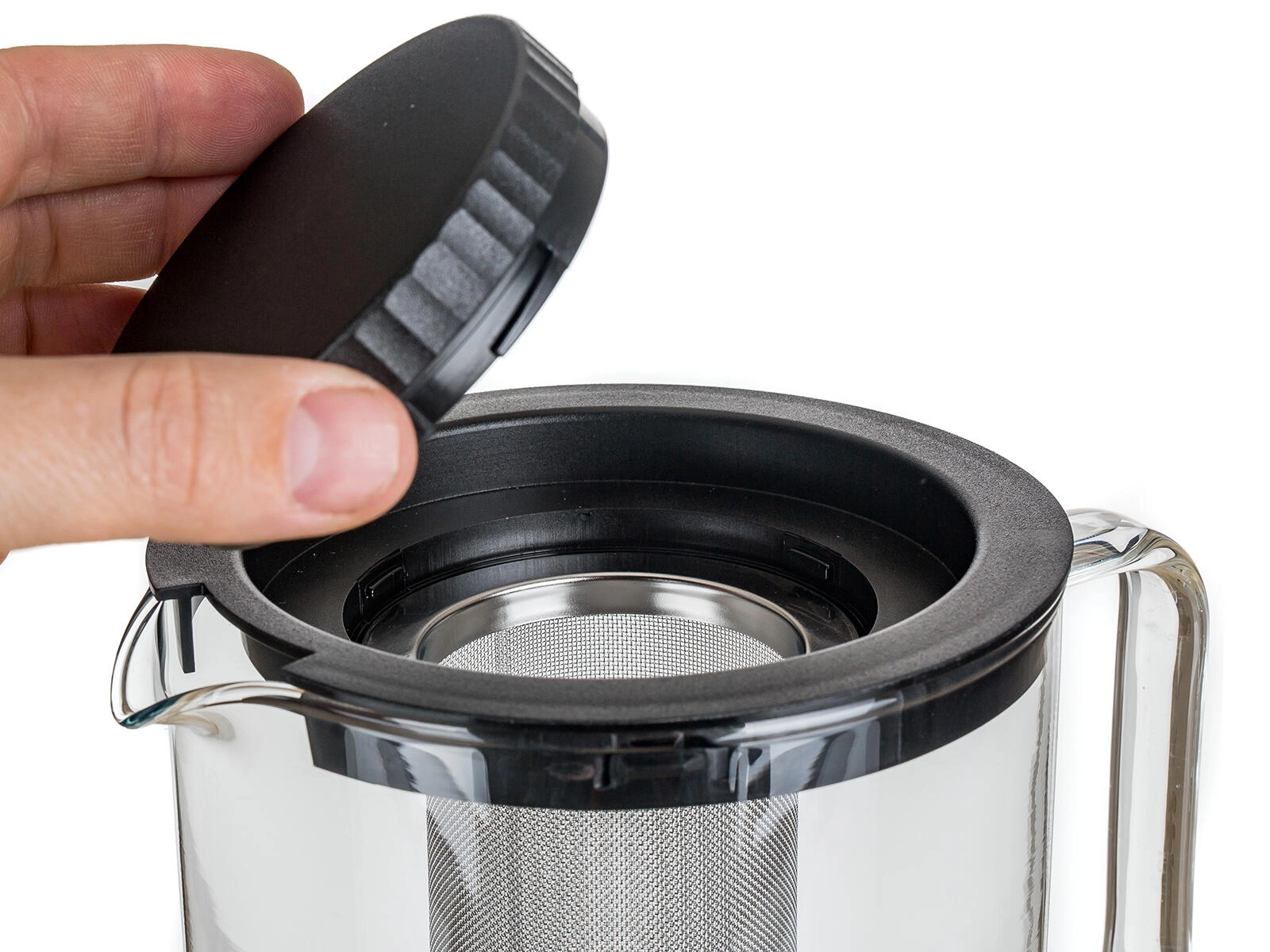 Le filtre en acier inoxydable fin retient même les petites feuilles et les herbes et peut être retiré facilement si vous souhaitez utiliser la théière sans filtre. Sa surface lisse et non poreuse est hygiénique et simple à entretenir – la théière et ses éléments peuvent être lavés au lave-vaisselle. Le couvercle en plastique assure une bonne étanchéité et la poignée en verre, confortable, garantit un service en toute sécurité.
