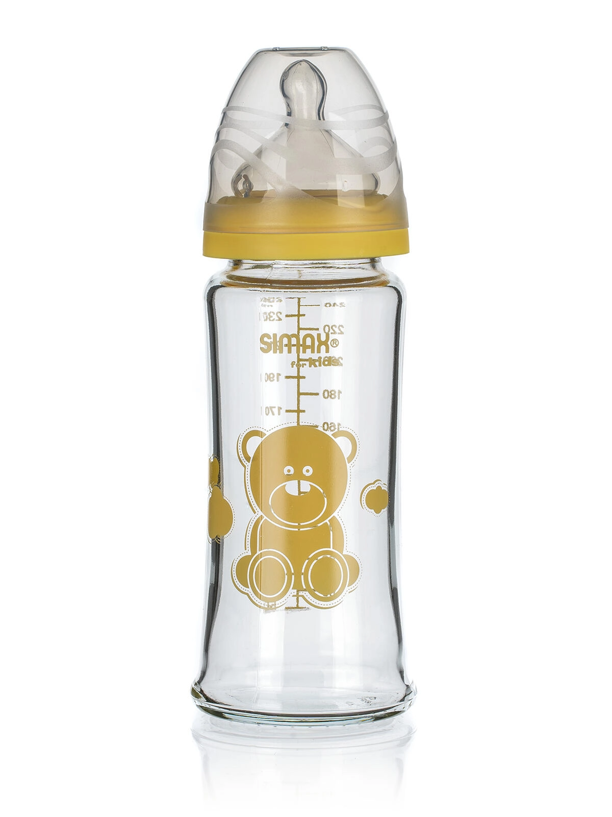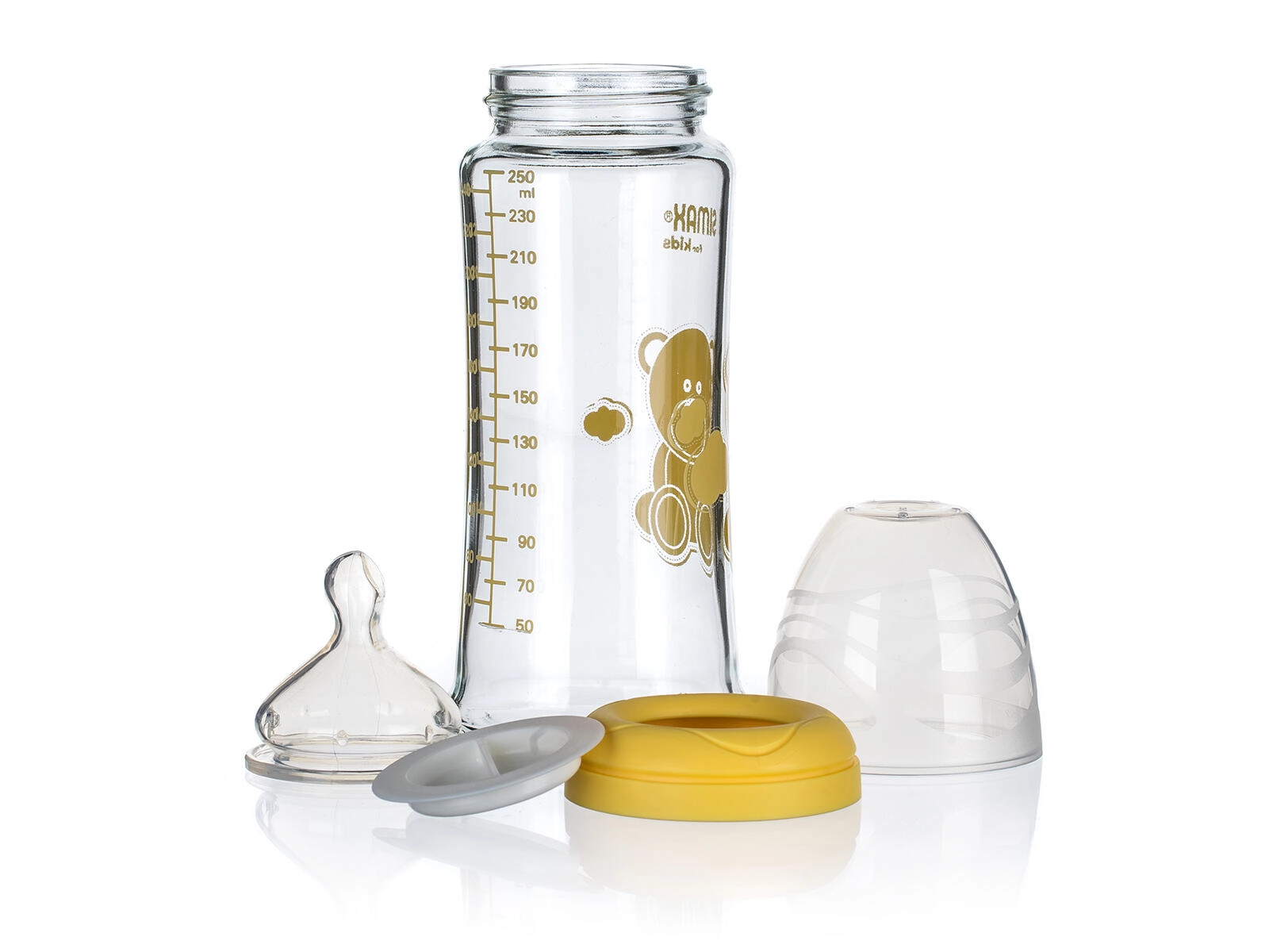 Biberon pratique et sûr de 250 ml en verre borosilicaté résistant. Offre une longue durée de vie, une excellente résistance thermique (+300 / -40 °C) et un entretien facile au lave-vaisselle. La large ouverture facilite le remplissage et le nettoyage et garantit une innocuité hygiénique pour un usage quotidien.