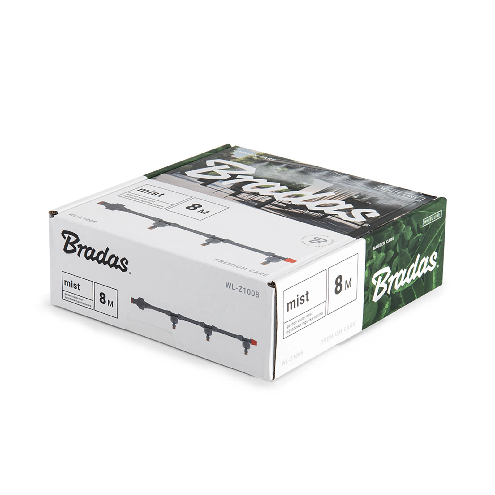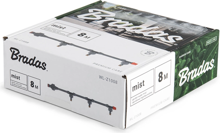 Le kit de brumisation complet WHITE LINE offre un refroidissement rapide et efficace des espaces extérieurs. L’installation est simple : il suffit de raccorder l’adaptateur de connexion avec filtre à l’arrivée d’eau et de déployer le tuyau de 8 m avec buses en laiton le long d’une pergola, d’une tonnelle ou d’une structure de jardin. La fine brume améliore nettement le microclimat sur la terrasse comme dans la serre.