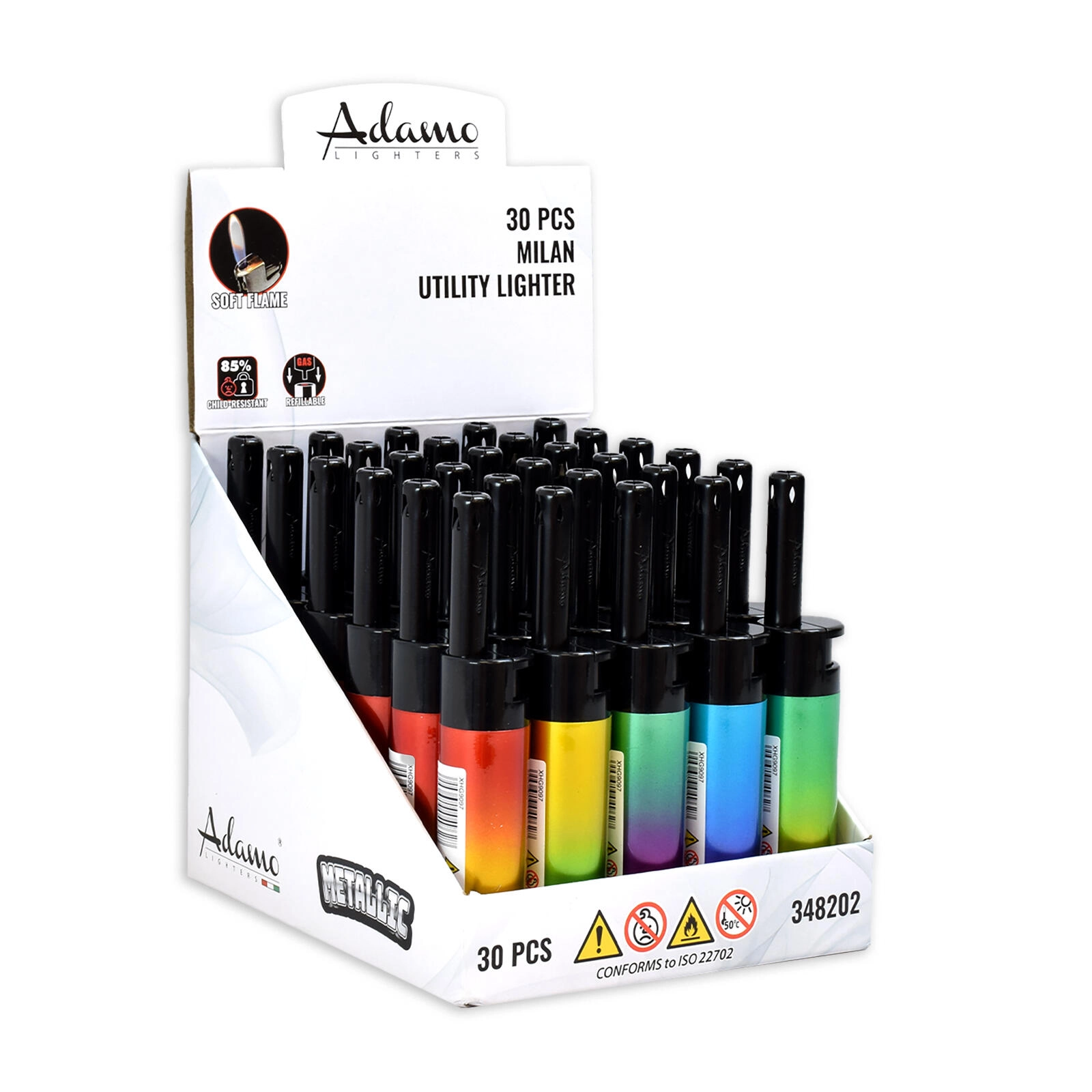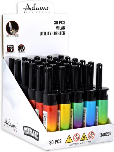Briquet à flamme pratique avec une longue buse métallique pour un allumage sûr des bougies, barbecues et cuisinières. Corps en nylon résistant supportant des températures élevées, flamme réglable en continu et briquet rechargeable au gaz. L’attrayant assortiment de couleurs arc‑en‑ciel en fait un accessoire stylé pour chaque foyer.