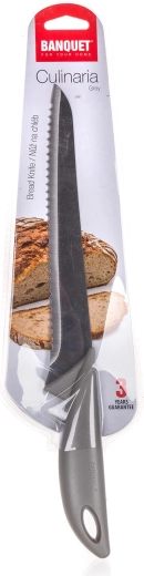 Le couteau à pain CULINARIA Grey, avec une lame de 20 cm, est conçu pour une coupe facile et nette du pain frais comme du pain de mie. Sa lame en acier de qualité assure une longue durée de vie et une coupe précise, tandis que la poignée ergonomique en plastique offre une prise en main confortable et sûre.
