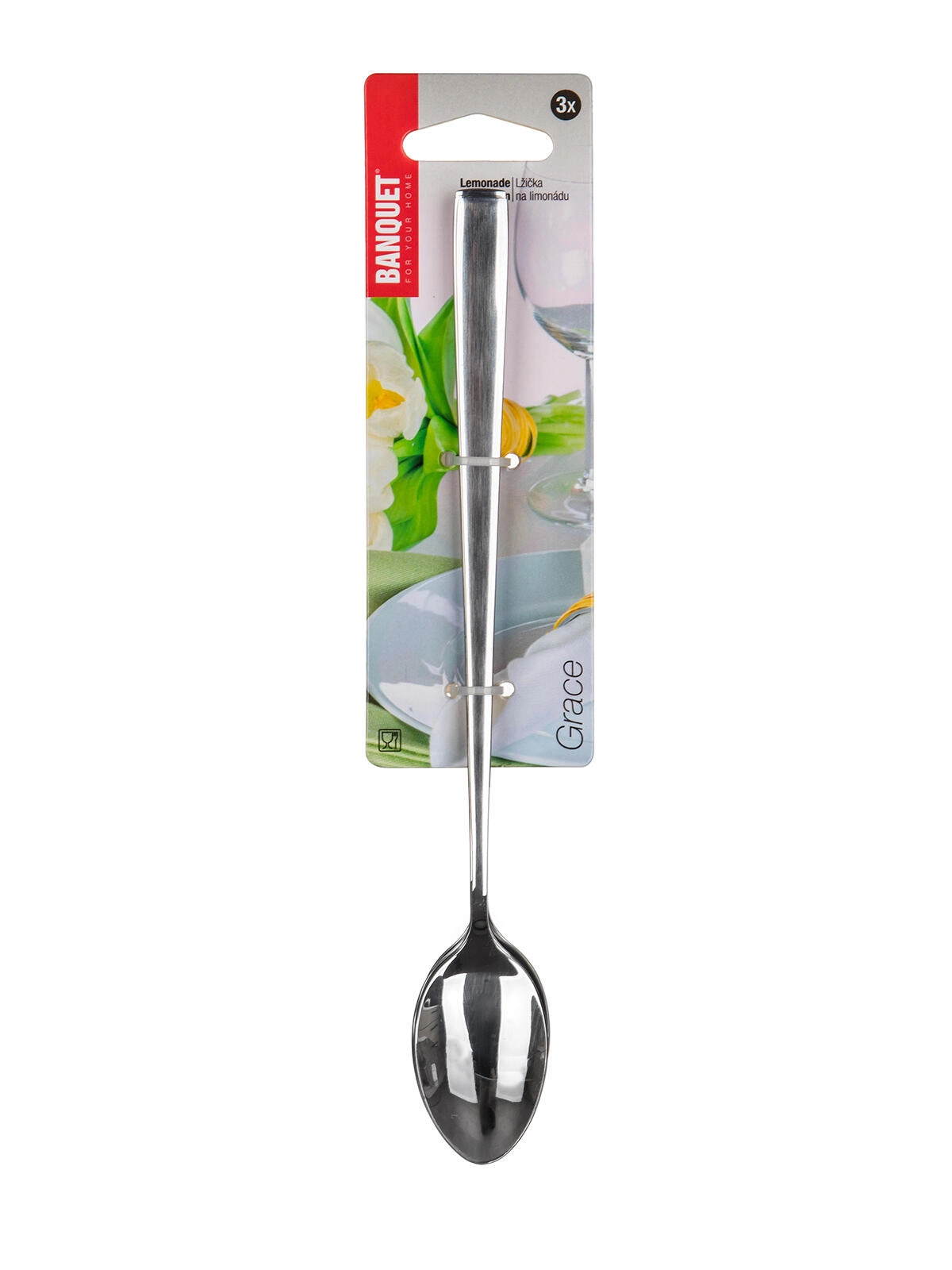 Élégantes cuillères à limonade en acier inoxydable de haute qualité GRACE qui raviront tous les amateurs de boissons. Grâce à leur longueur de 17,5 cm, elles atteignent facilement le fond des verres hauts et leur finition miroir (mirror polish) apporte une touche d’élégance à votre table. L’inox 18/0 durable et l’épaisseur de 2 mm garantissent solidité et longévité. L’emballage contient 3 pièces pour un usage quotidien.