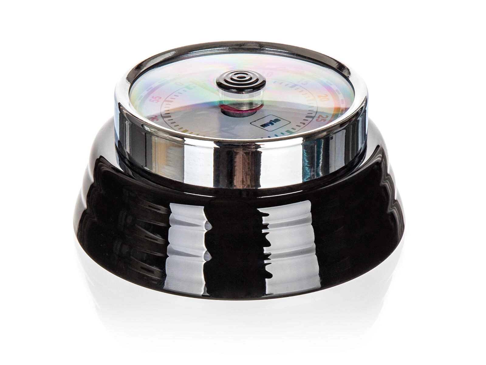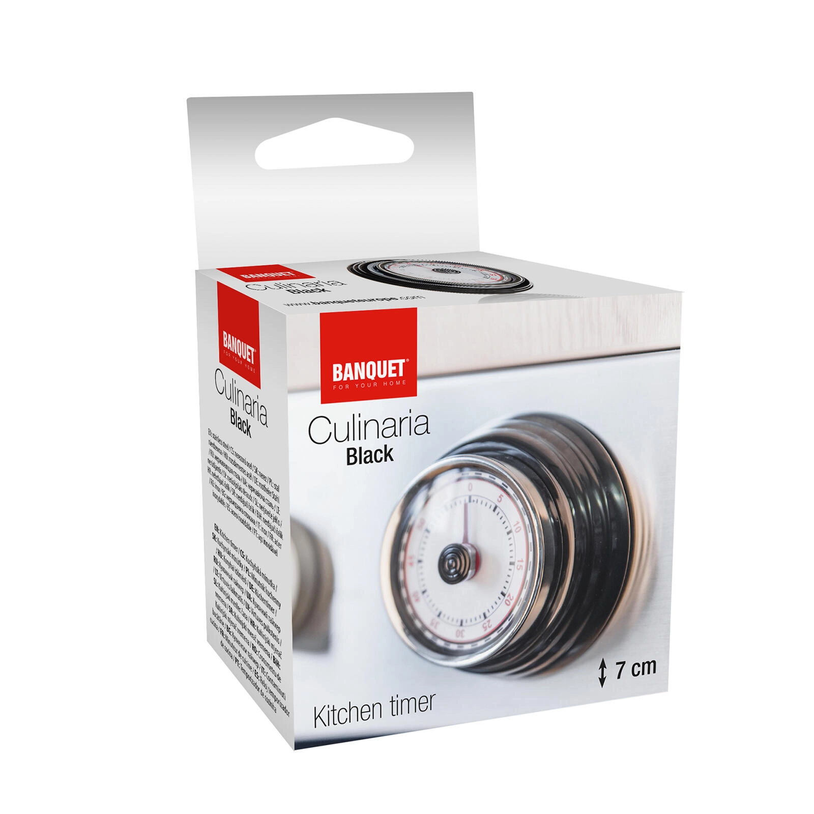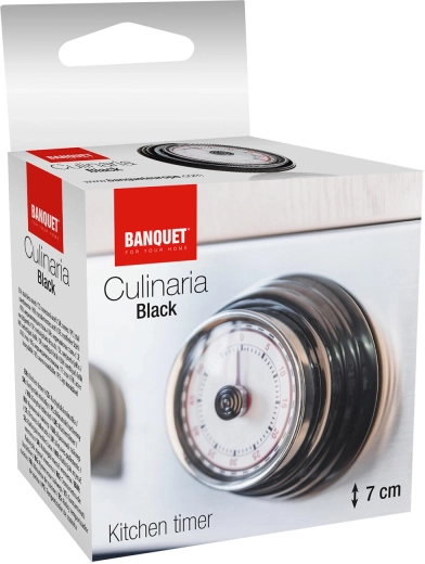 Découvrez le minuteur mécanique CULINARIA, qui séduit par sa couleur noire élégante, son anneau chromé et son cadran lisible avec des repères de minutes bien visibles. Le réglage se fait rapidement en tournant le bouton central, et à la fin du temps un signal sonore puissant retentit.