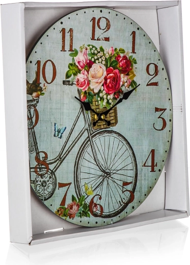 Une horloge murale élégante de 34 cm de diamètre avec le motif BICYCLE qui embellira tout intérieur. Grâce à son cadran lisible et à son mécanisme silencieux, elle est idéale pour le salon, la cuisine ou le bureau. Alimentation simple par pile AA (non incluse) et décor couvrant toute la surface pour un accessoire de maison à la fois attrayant et fonctionnel.