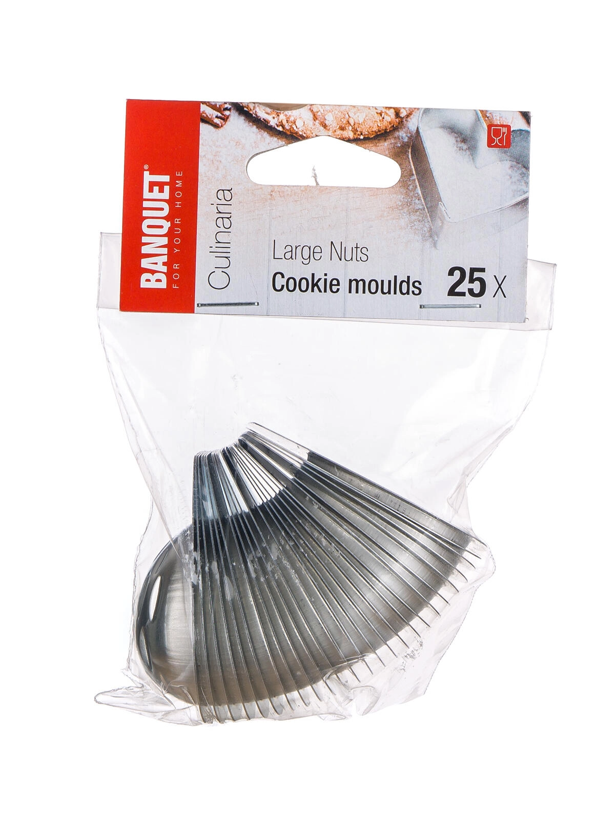 Découvrez le set pratique de moules Culinaria en forme de grande noix pour une pâtisserie maison facile. Grâce à la tôle étamée robuste, les moules sont résistants, faciles à démouler et garantissent une cuisson uniforme. L’emballage contient 25 pièces, idéal pour préparer les populaires « noix » et autres douceurs.