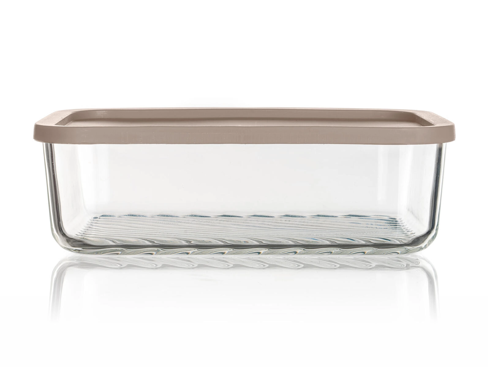 Le bocal en verre WAVE de 1,55 l est idéal pour la conservation quotidienne des aliments, la congélation préparatoire et la cuisson. Le verre résistant permet une utilisation au four et au micro-ondes (sans le couvercle), tandis que le couvercle en plastique teinte latte assure une étanchéité fiable et une fraîcheur durable. Grâce à sa forme rectangulaire, il s’adapte parfaitement au réfrigérateur, au garde-manger et au sac de voyage.