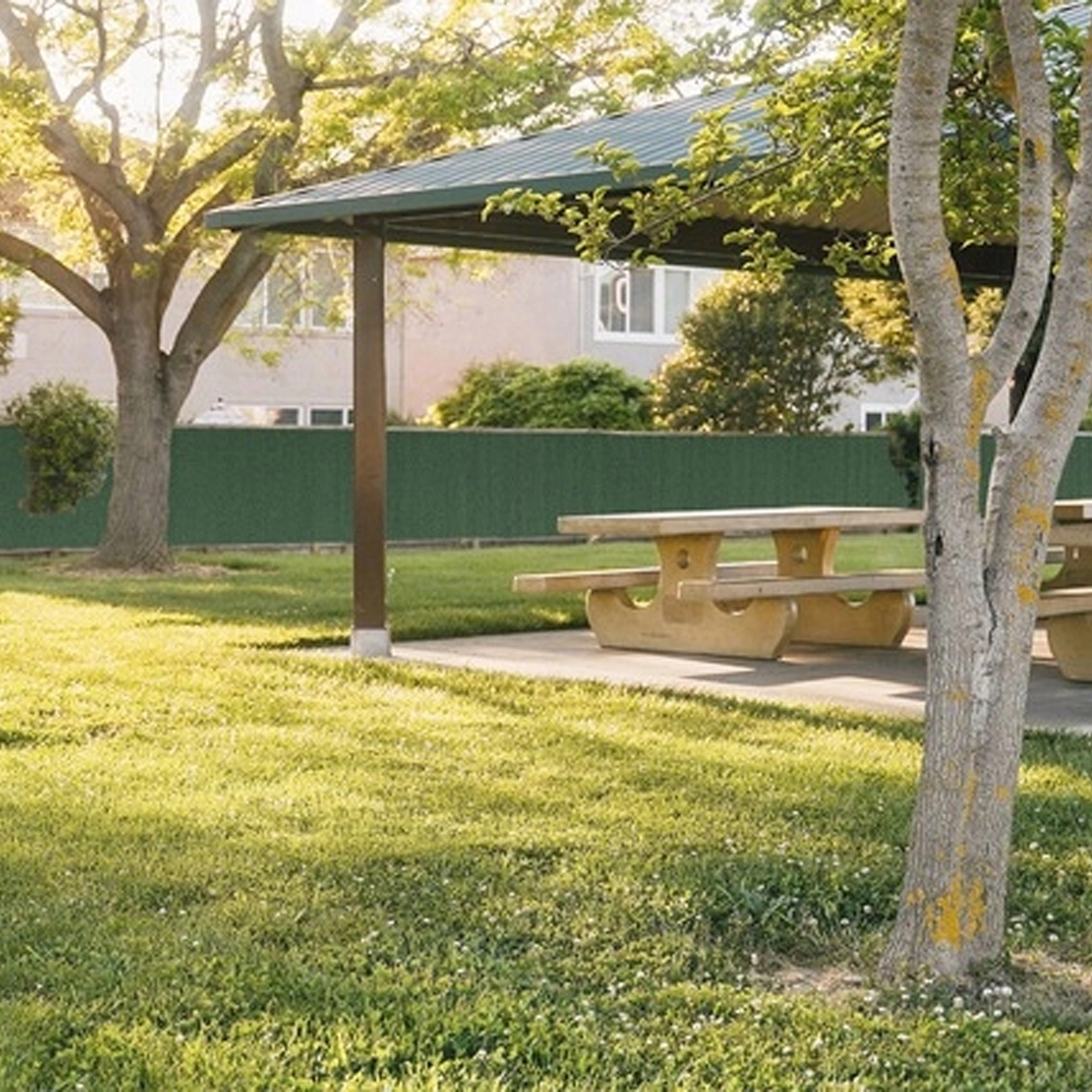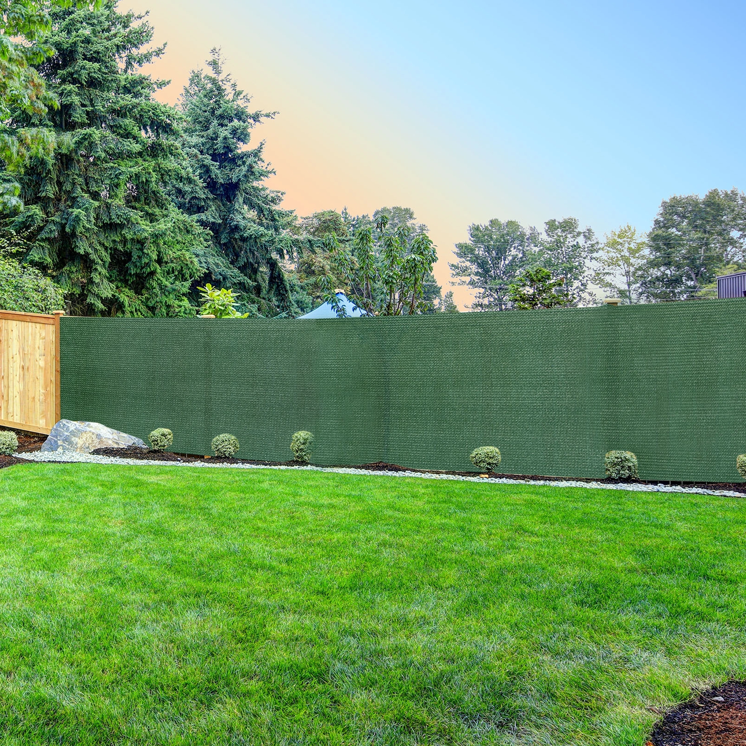 La maille dense réduit la visibilité à travers la clôture, procure de l’ombre et atténue les effets du vent – idéale pour jardins et cours.