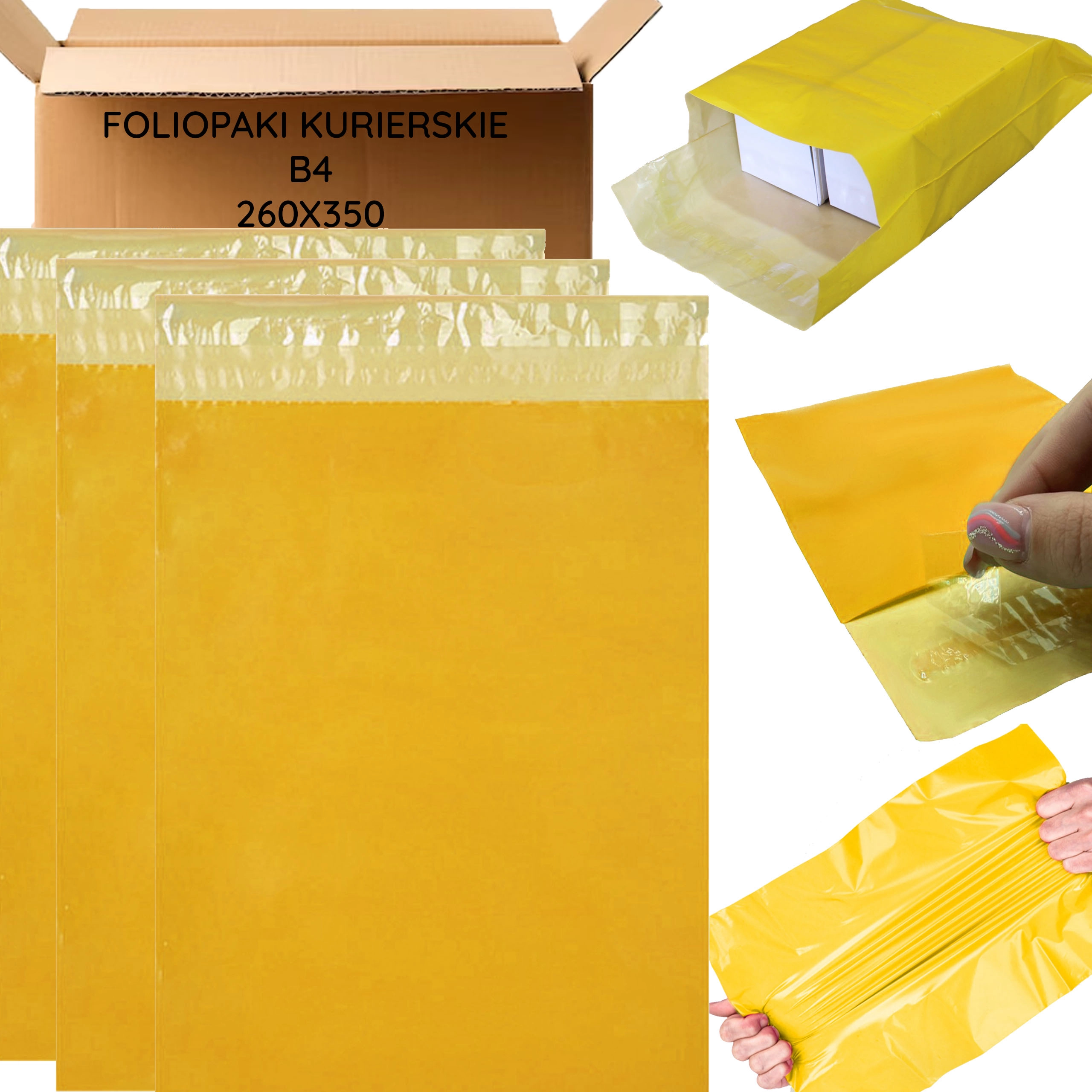 Enveloppes de livraison jaunes résistantes en plastique au format B4 (260 × 350 mm) pour l’emballage rapide et sécurisé d’envois non fragiles. Le ruban autoadhésif assure une fermeture fiable sans ruban adhésif, tandis que le matériau solide et flexible protège le contenu contre l’humidité et les déchirures. Idéal pour la logistique e‑commerce et les expéditions quotidiennes. Lot de 50 pièces.