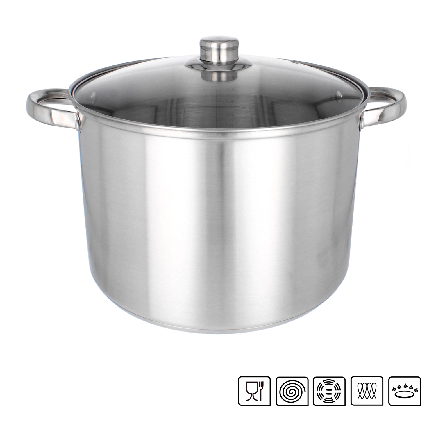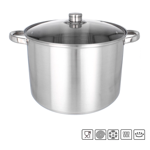 Marmite en acier inoxydable 14 l, diamètre 30 cm avec couvercle en verre
