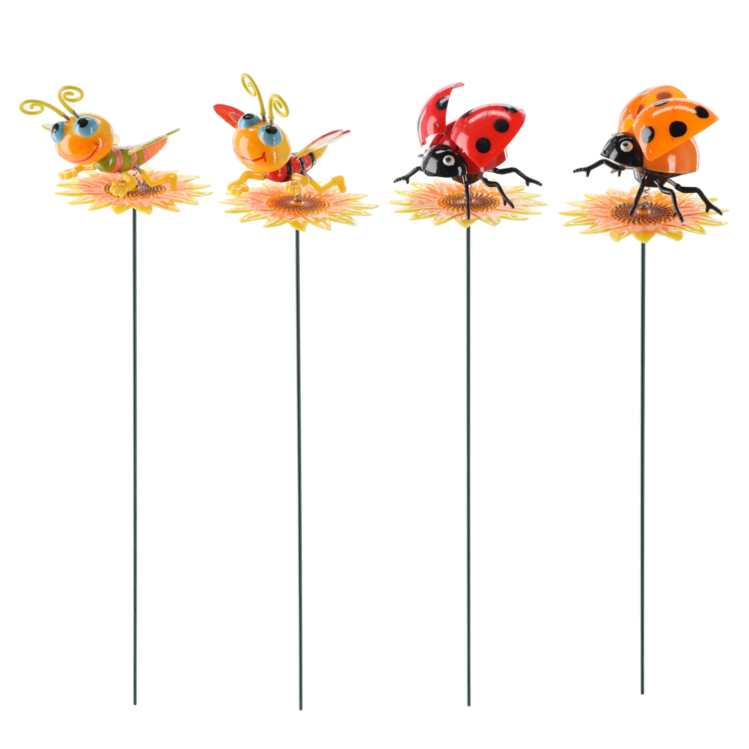Cette décoration de jardin sur tige transforme chaque massif, jardinière ou pot en une scène ludique et colorée. Sur une fine tige métallique est placée une figurine d’insecte détaillée sur une fleur – disponibles en motifs de coccinelles et d’abeilles dans des associations de couleurs attrayantes.
