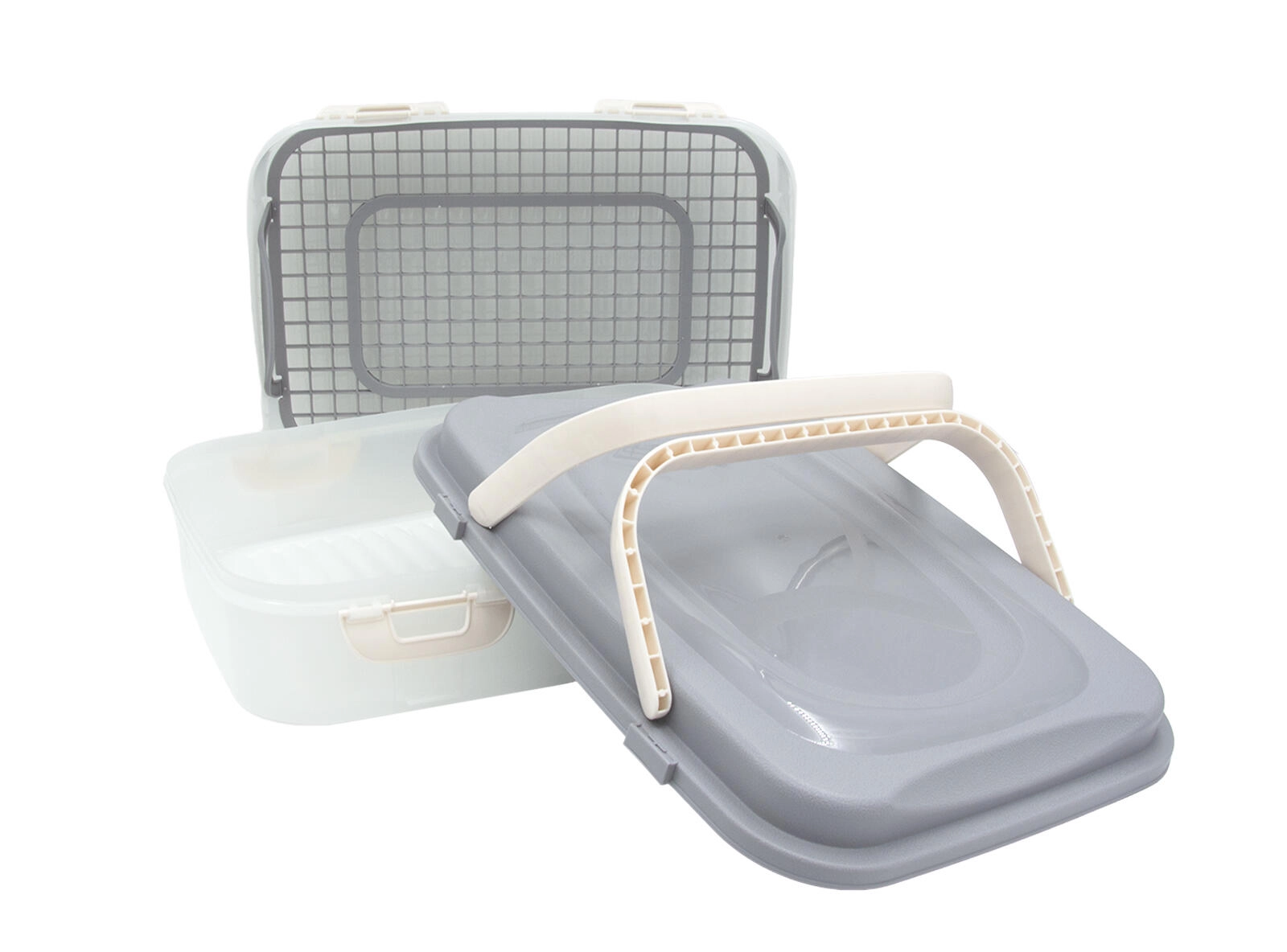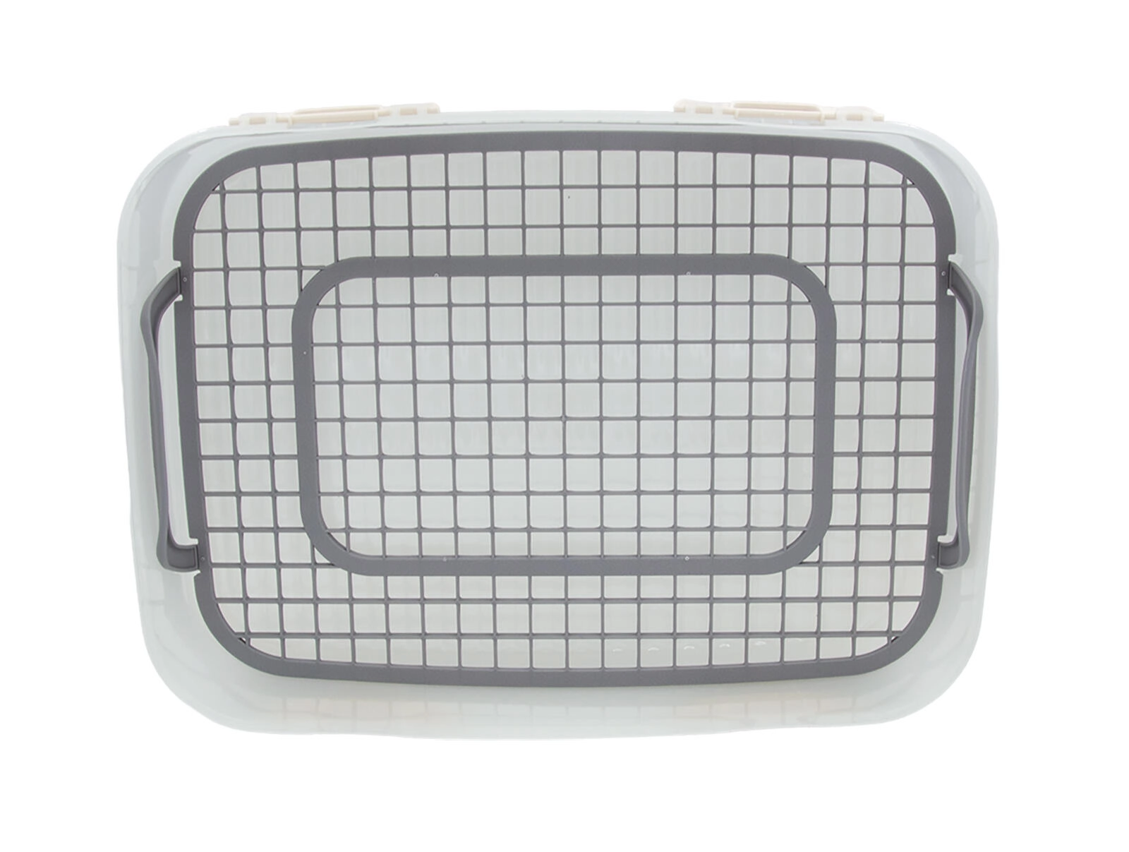 La grille intérieure intégrée avec poignées facilite le retrait du contenu et maintient l’ordre. Les poignées pratiques sur le couvercle assurent un port confortable et sûr. Grâce au design transparent, vous gardez toujours une vue d’ensemble sur le contenu.