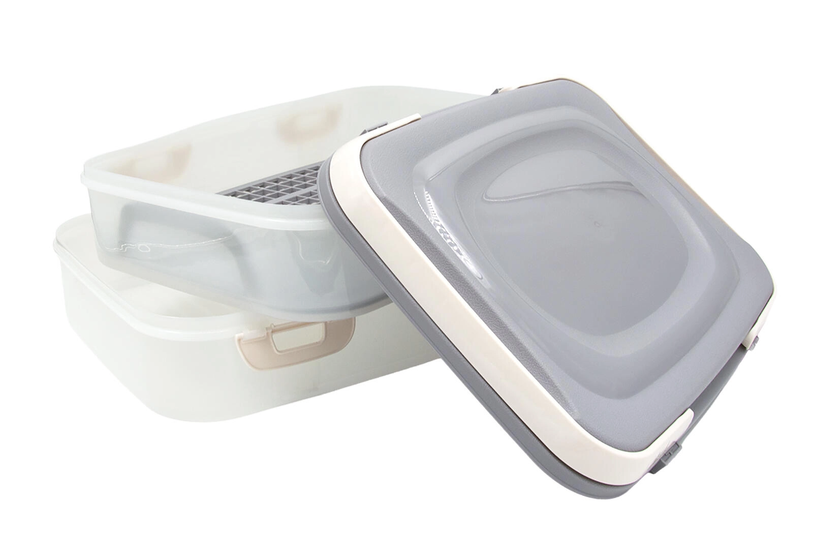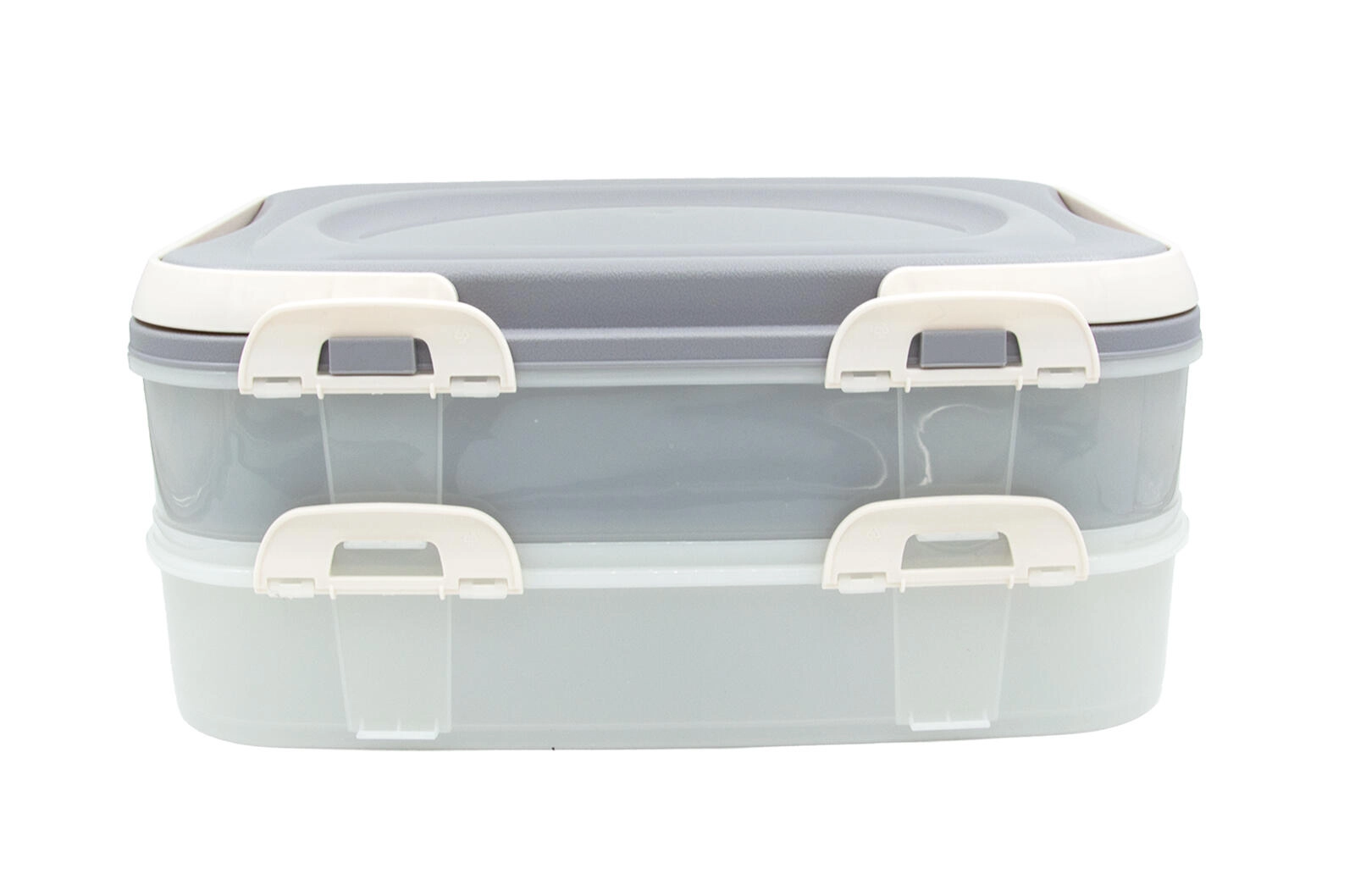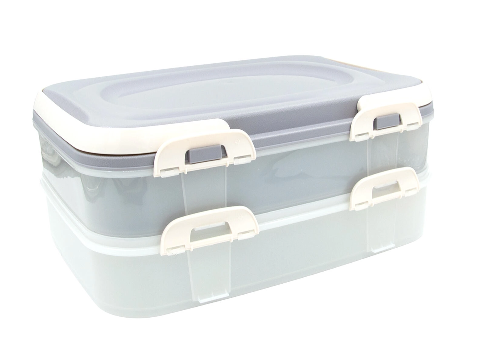 Pratique, cette boîte alimentaire à deux niveaux d’une capacité de 2 × 7 l est idéale pour le transport comme pour le stockage. Elle offre une fermeture sécurisée par clips, un portage confortable grâce à des poignées robustes et un rangement clair grâce à la grille intérieure. Parfaite pour les pique-niques, fêtes au jardin et voyages.