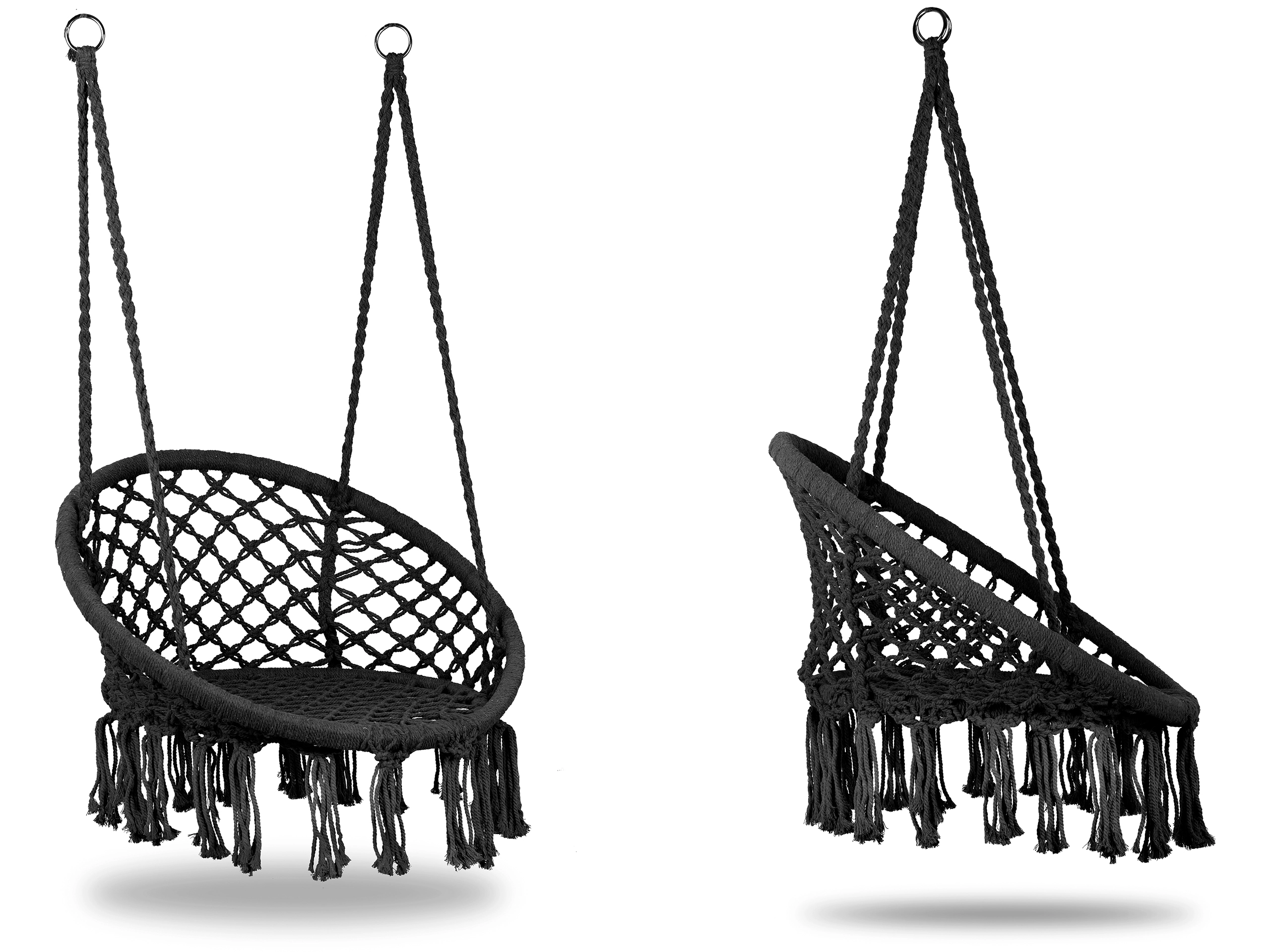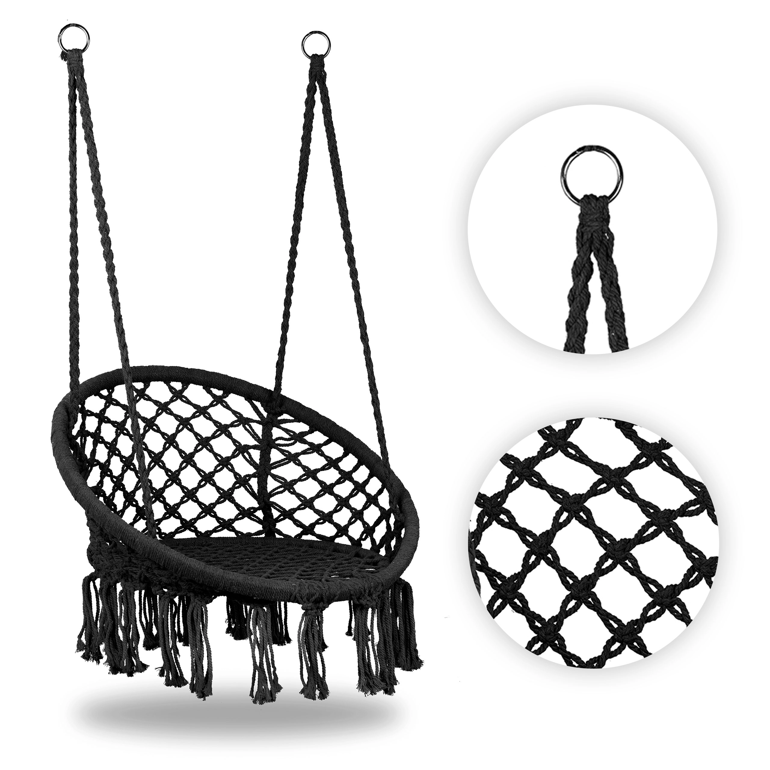 Le fauteuil suspendu au style boho insuffle une atmosphère apaisante, dedans comme dehors. Son aspect macramé aéré avec franges est à la fois élégant et chaleureux – l’endroit parfait pour le café du matin, la lecture ou la détente du soir. Grâce aux anneaux de suspension solides, vous l’installez facilement sur un crochet au plafond, une poutre ou un support.