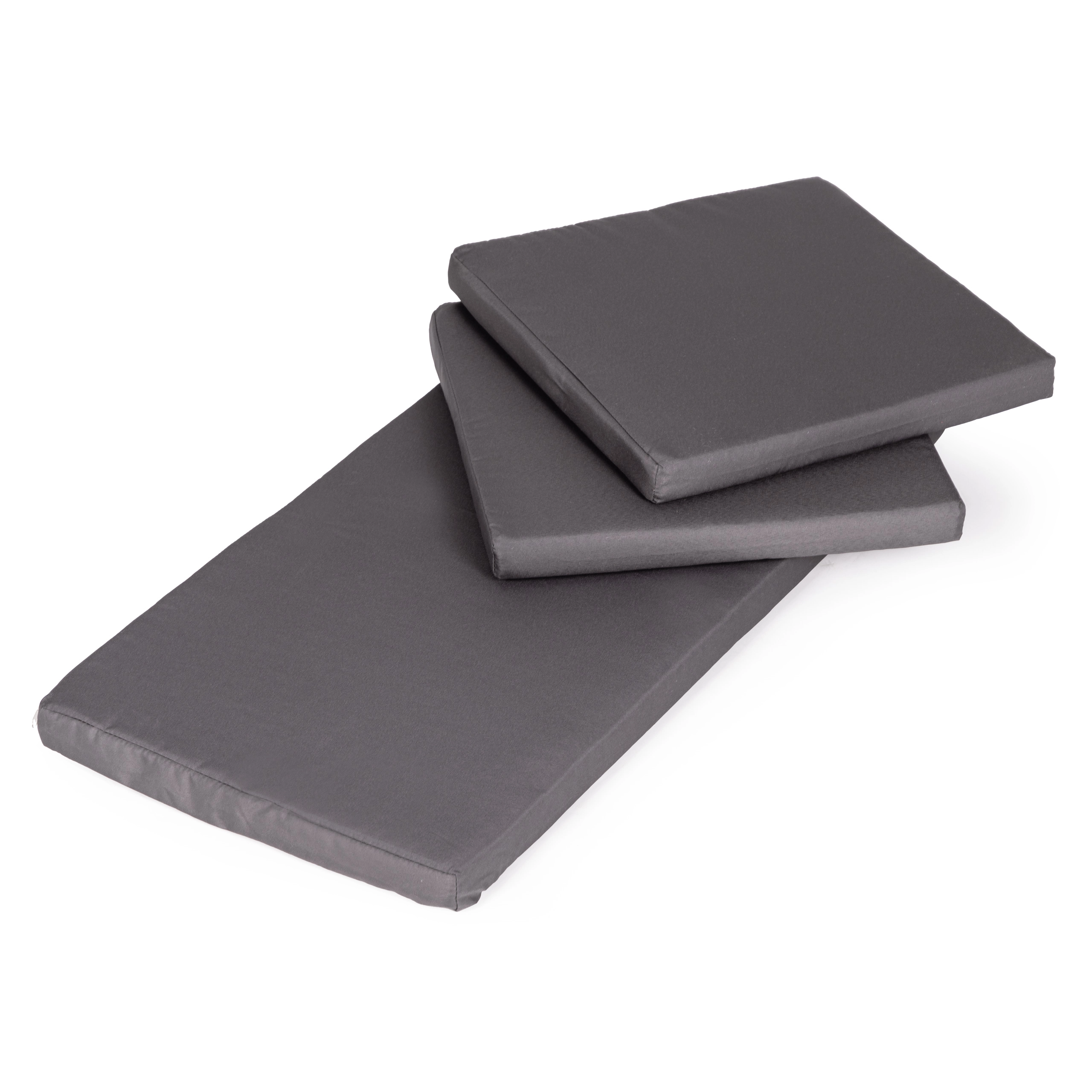 Les coussins en polyester 160 g/m² avec garnissage en mousse offrent une assise agréable, résistent mieux aux UV et à l’humidité et conservent leur forme même en cas d’usage fréquent.