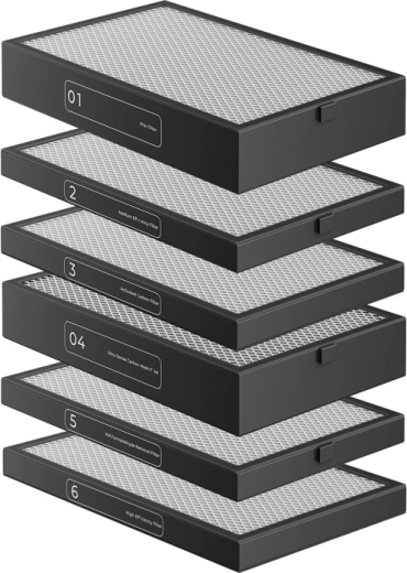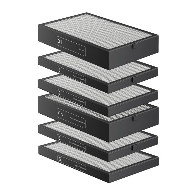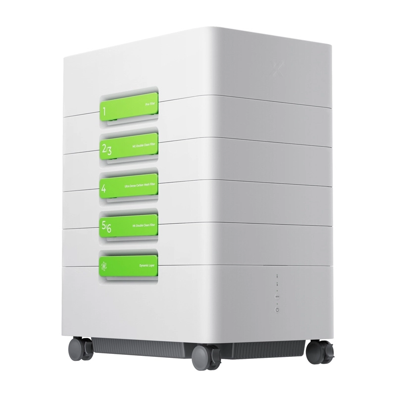- 7 couches de filtration incluant HEPA et double couche de charbon pour les odeurs et COV