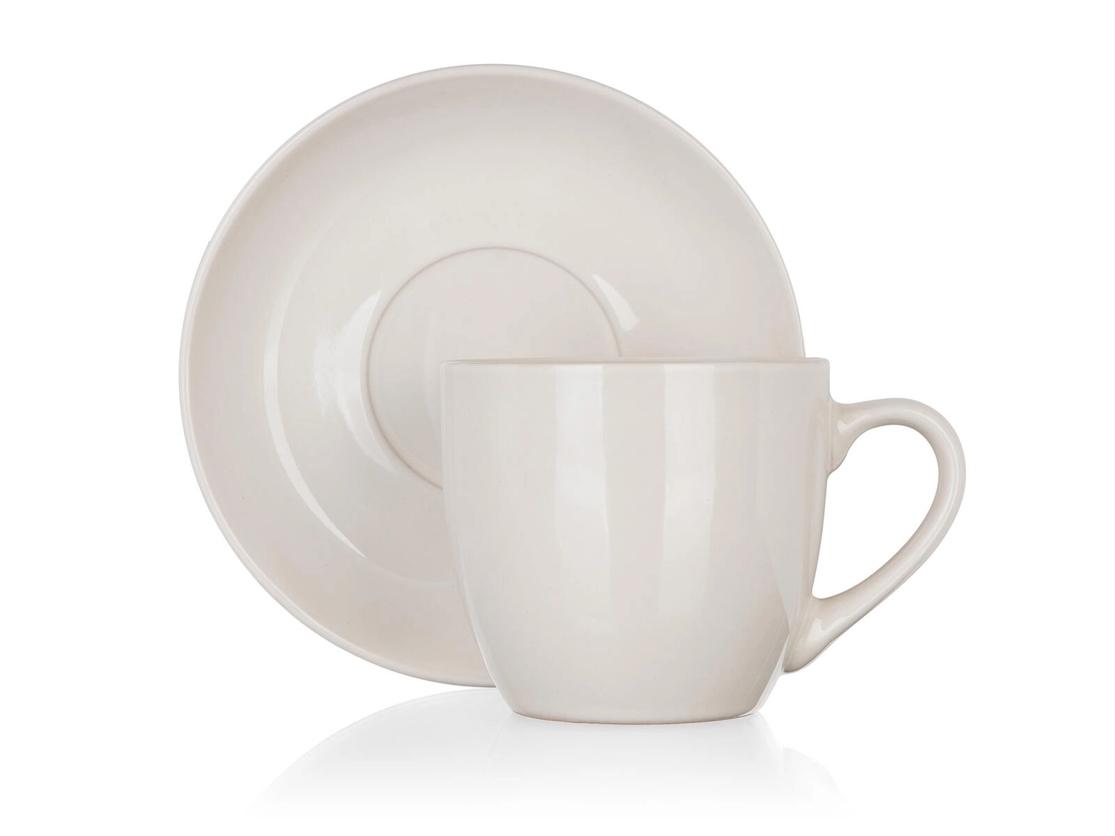 Découvrez l’élégance intemporelle de la collection Natural Ivory. Cette tasse de 250 ml avec soucoupe assortie (Ø 15 cm) est fabriquée en céramique européenne de qualité avec glaçure brillante pour un entretien facile et une longue durée de vie. La délicate teinte ivoire sublime le service du café, du thé et du chocolat chaud.