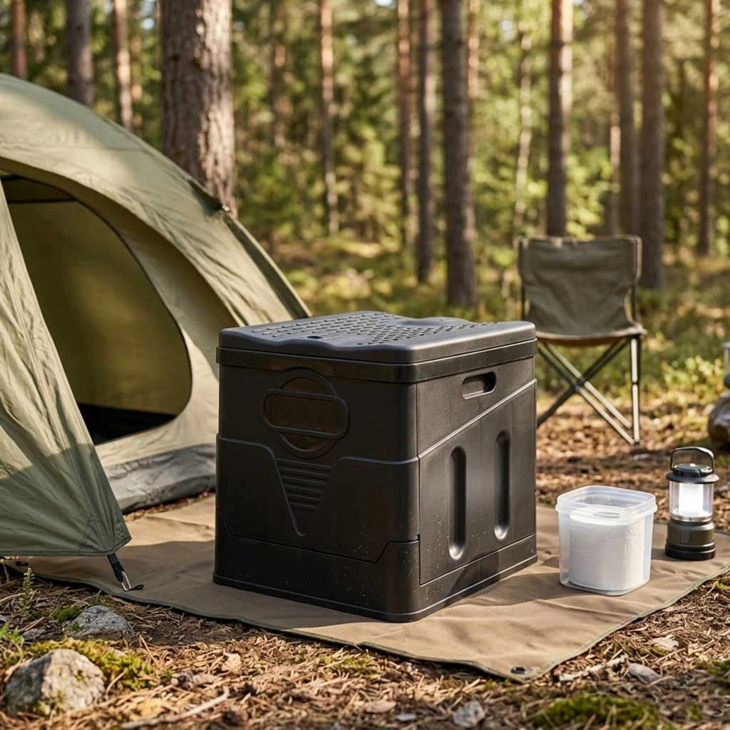 Toilette pliable et portable compacte et stable pour le camping, le jardin et les voyages, offrant confort et hygiène partout. Grâce à son volume de 20 l, sa structure légère en PP et l’utilisation de sachets jetables, l’entretien est simple et sans contact. Les poignées latérales et le couvercle solide facilitent le transport et l’assise, tandis que la capacité de charge maximale de 115 kg garantit la sécurité même sur surface irrégulière.