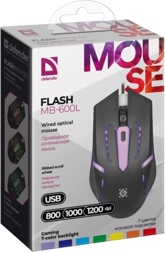 Souris de jeu filaire DEFENDER Flash MB-600L avec rétroéclairage 7 couleurs