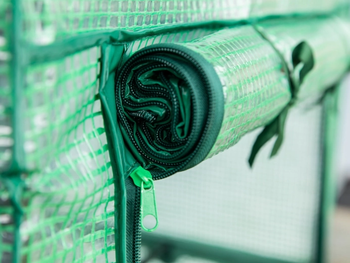 Cette mini serre pratique crée un microclimat stable pour une croissance saine des plantes. La bâche verte transparente en polyester 140 g/m² renforcée d’un maillage protège du vent, de la pluie et des nuisibles tout en laissant passer suffisamment de lumière. L’entrée frontale à double zip offre un accès et une aération aisés.