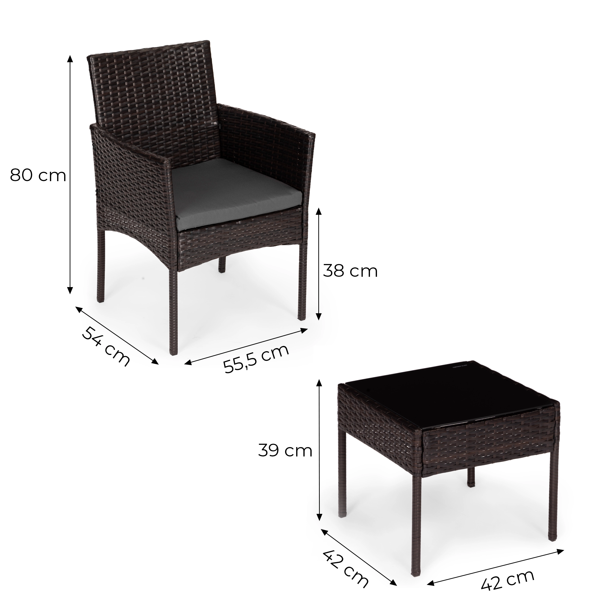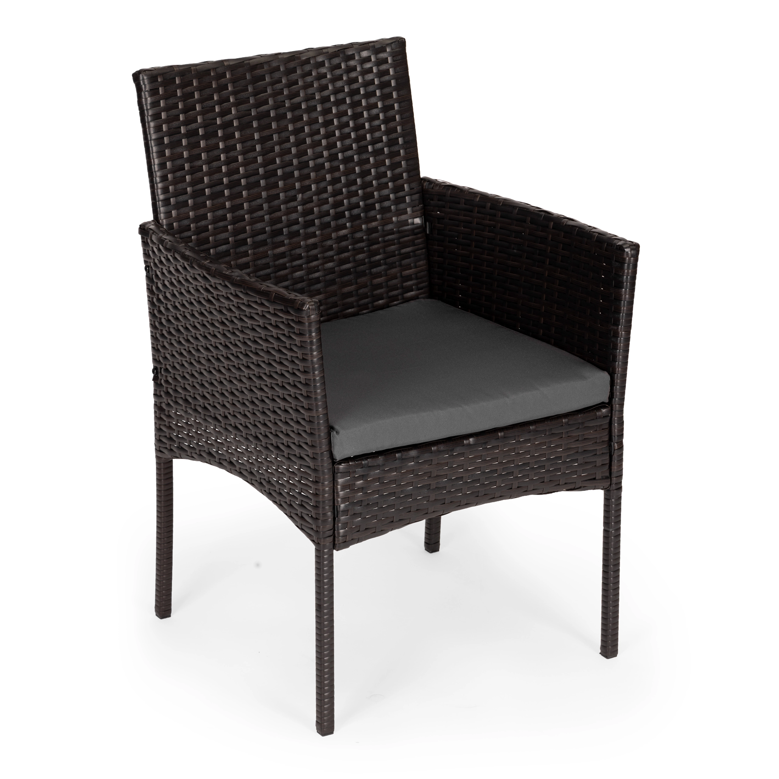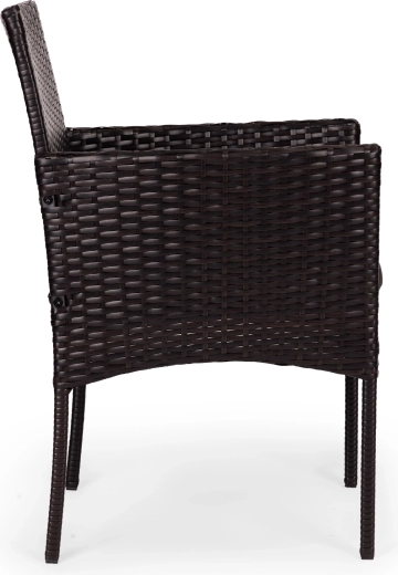 Créez un coin détente confortable pour le café du matin comme pour les soirées. Le set comprend 2 fauteuils confortables avec accoudoirs et une table carrée avec plateau en verre trempé. La combinaison durable acier et résine tressée garantit stabilité, longévité et entretien facile.