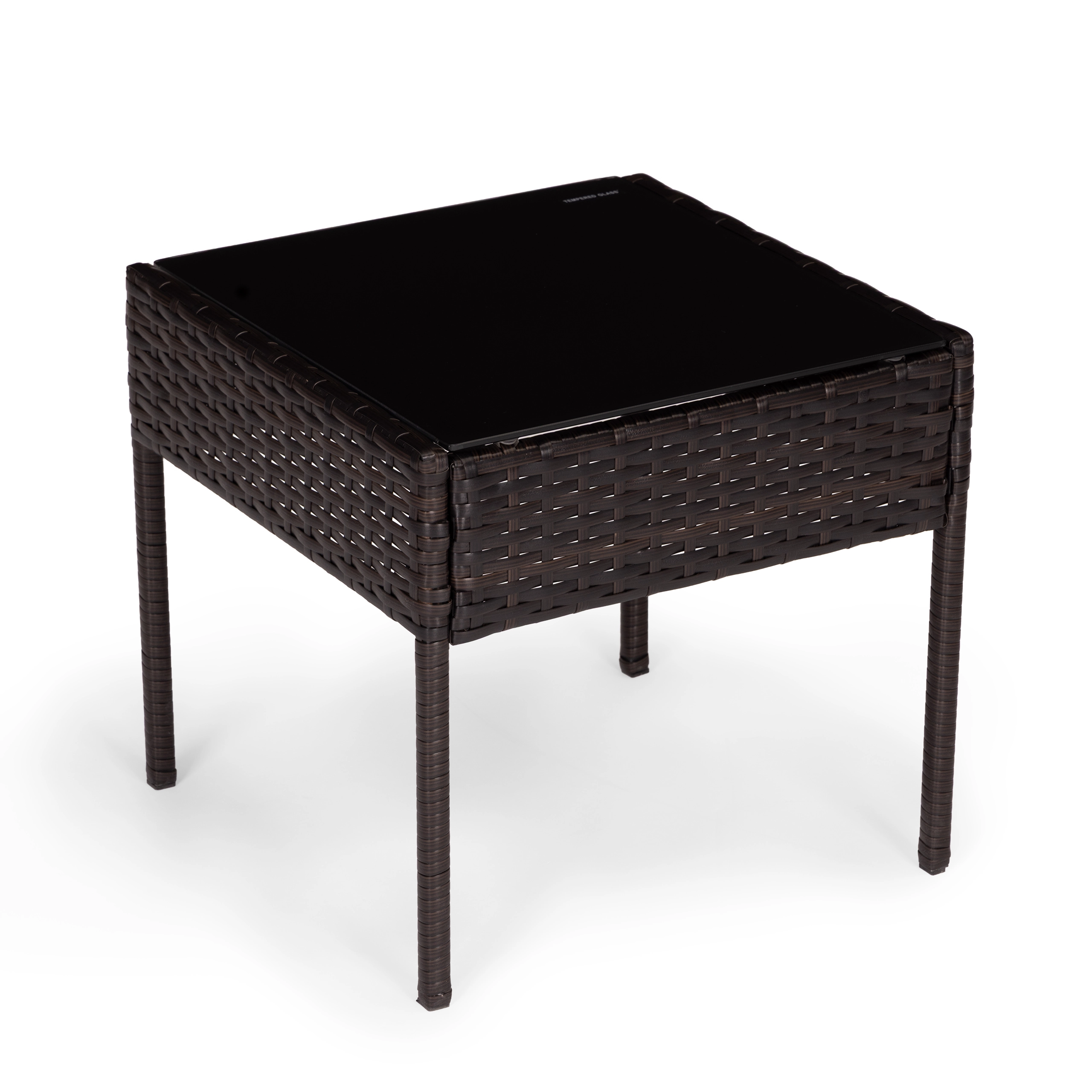 Acier, résine tressée (rotin synthétique), PP, verre trempé, polyester