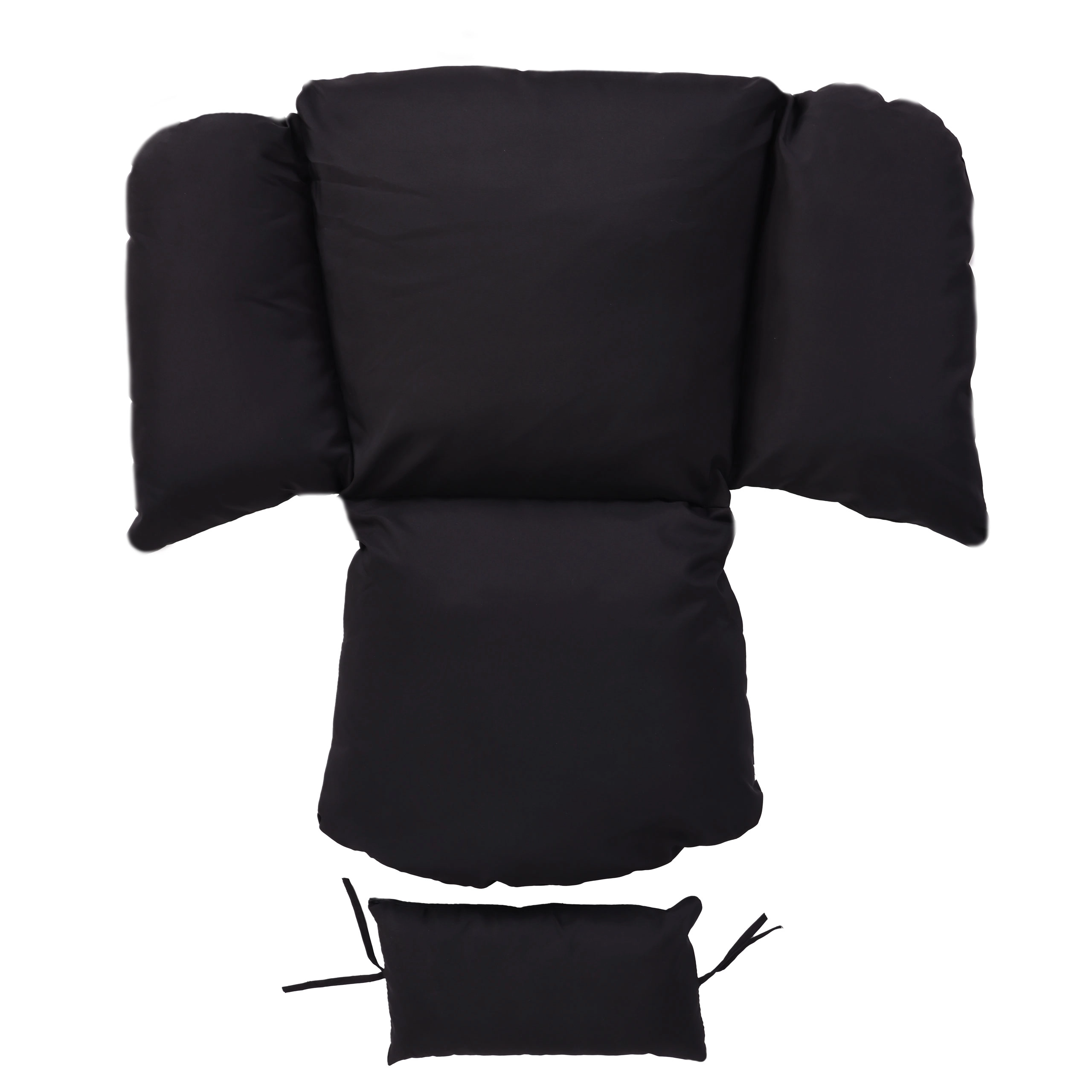 Le set comprend de moelleux coussins d’environ 15 cm d’épaisseur et des housses amovibles pour un entretien facile. Le coussin d’appui-tête peut être attaché au cadre pour rester exactement à l’endroit souhaité. Grâce à une capacité de charge de 120 kg et à des dimensions universelles, le fauteuil convient aux terrasses, jardins et balcons.