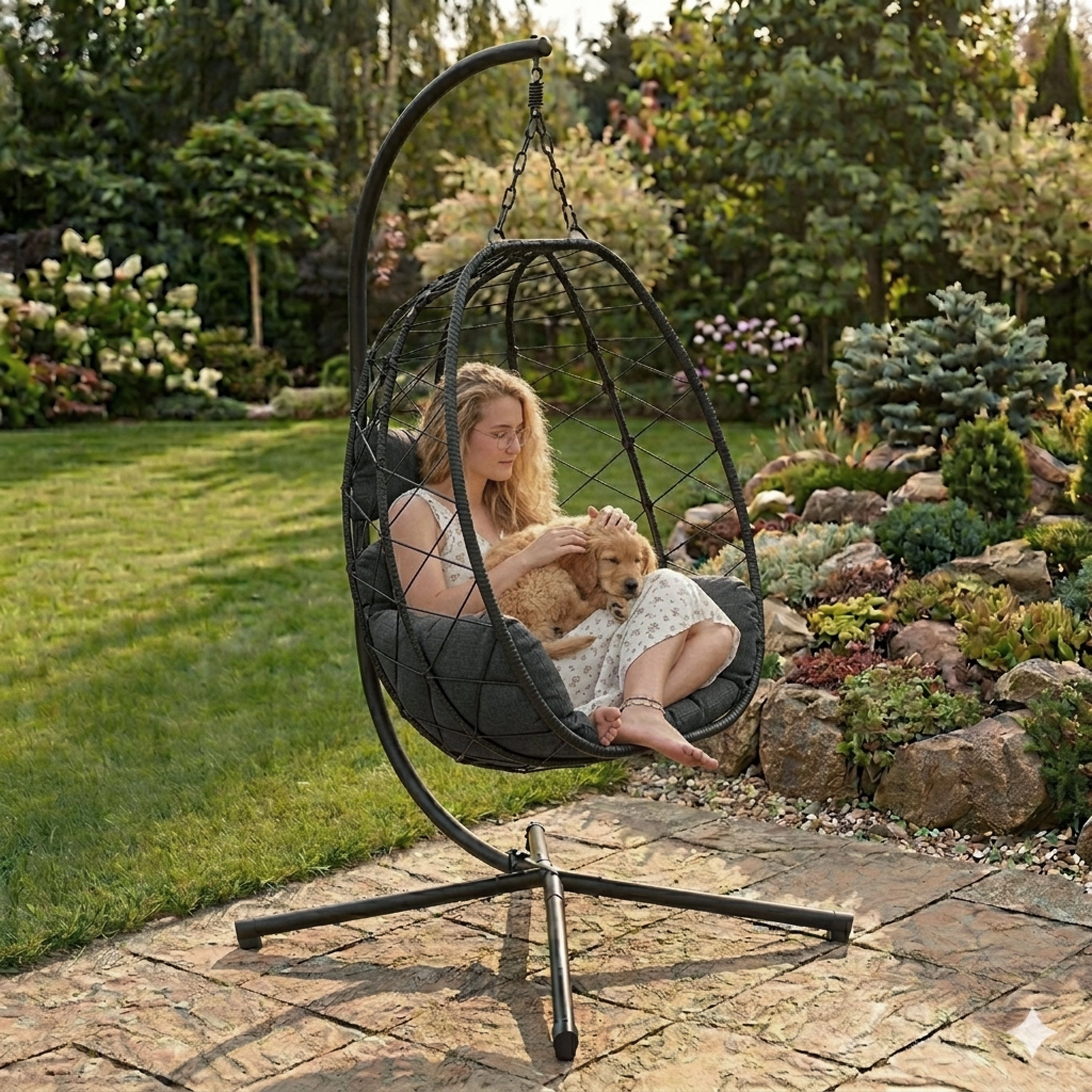 Découvrez une nouvelle définition du repos. Le design cocon/œuf crée une intimité chaleureuse et une touche design pour tout espace. Le balancement délicat associé à des coussins épais offre un confort maximal pour la lecture, le travail ou la détente.