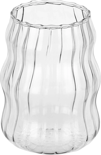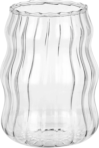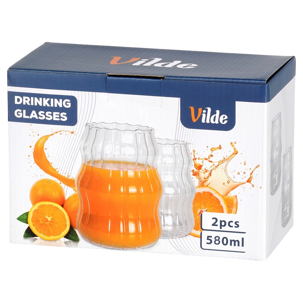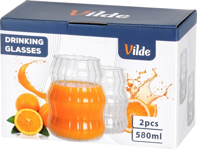 Ensemble élégant de deux verres de 580 ml en verre borosilicaté résistant. Grâce à leur forme ondulée et à leur rainurage vertical, ils tiennent parfaitement en main et mettent magnifiquement en valeur les boissons. Convient pour les boissons froides et chaudes, résistant de -20 °C à +120 °C, compatible lave-vaisselle et micro-ondes.