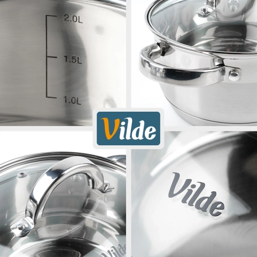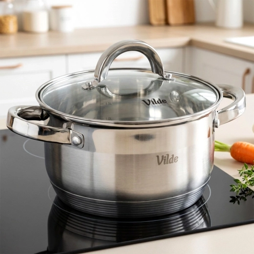 Découvrez la casserole fiable de la ligne Vilde INOXCELLENT, conçue pour la cuisson quotidienne, le mijotage et le gratin. Le couvercle en verre avec valve vapeur permet de contrôler les plats sans le soulever, tandis que le fond multicouche acuthermique « Maximum Power » assure une répartition rapide et uniforme de la chaleur.