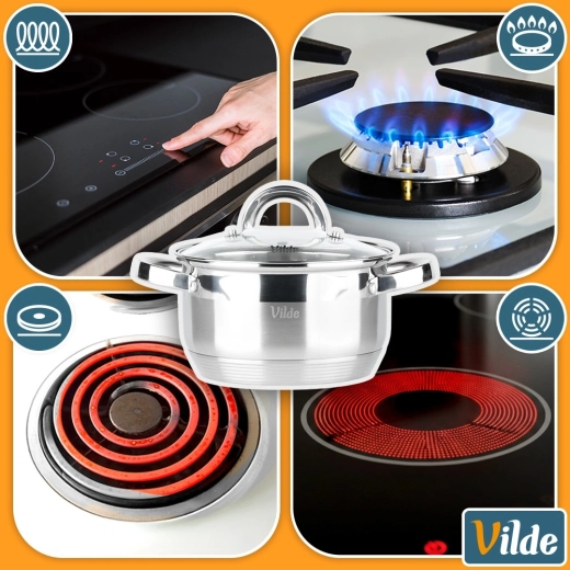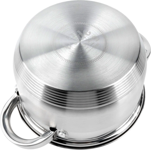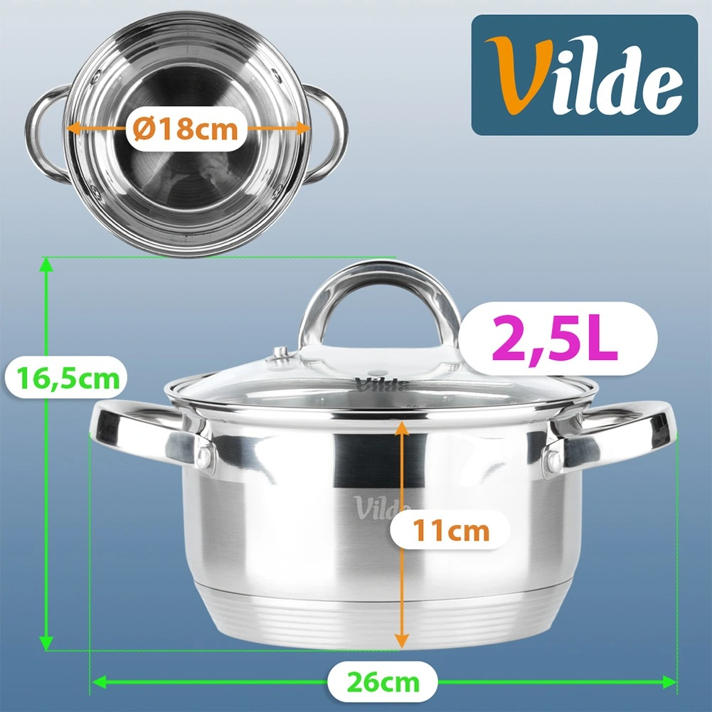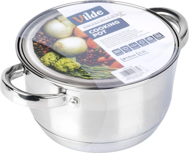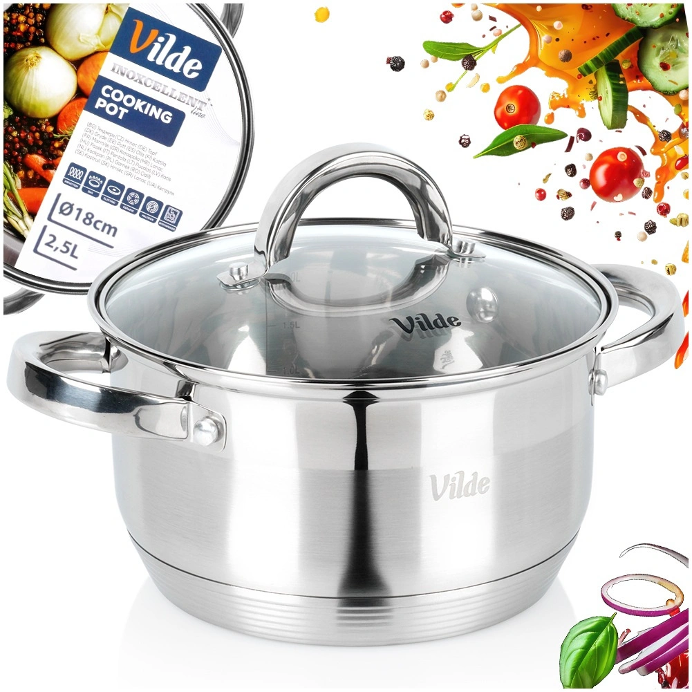 Casserole pratique en acier inoxydable d’une capacité de 2,5 l et d’un diamètre de 18 cm, avec couvercle transparent pour un contrôle facile de la cuisson. Grâce au fond acuthermique, elle répartit la chaleur uniformément, permet un chauffage rapide et est économe en énergie. Compatible avec tous les types de plaques, y compris l’induction, lavable au lave-vaisselle et utilisable au four jusqu’à 150 °C.