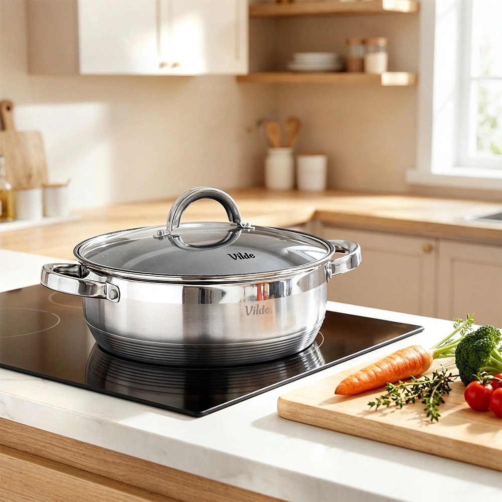 Le fond multicouche parfaitement plat accumule efficacement la chaleur et la répartit uniformément. Il économise l’énergie et assure des résultats stables sur tous les types de plaques, y compris l’induction.