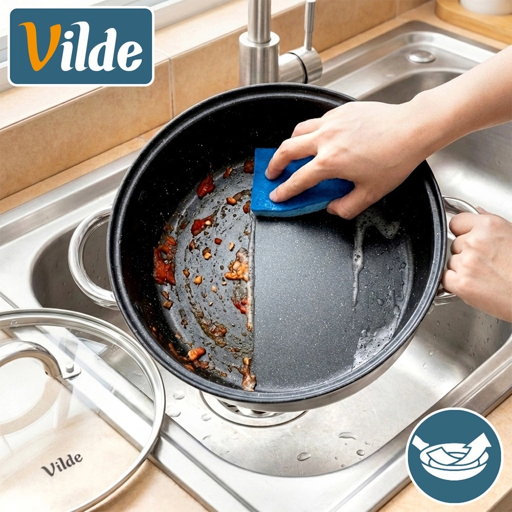 La couche antiadhésive granit minimise l’attachement des aliments, facilite la manipulation et réduit le temps de nettoyage. Idéale pour omelettes, viandes, légumes et sauces.