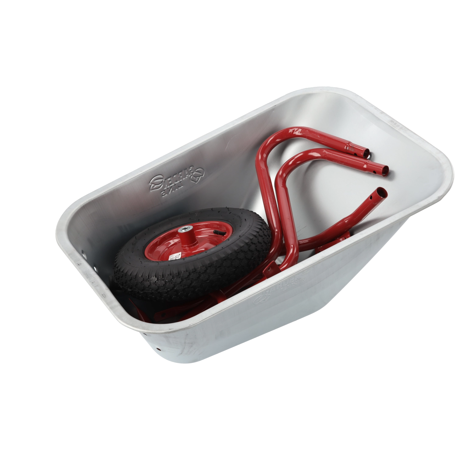 Vous cherchez une brouette fiable pour le jardin et le chantier ? Ce modèle associe une cuve galvanisée résistante à un cadre en acier peint robuste, ce qui lui permet de gérer sans compromis des charges lourdes et volumineuses. Les poignées en caoutchouc antidérapantes offrent assurance et contrôle lors des manœuvres et du basculement.